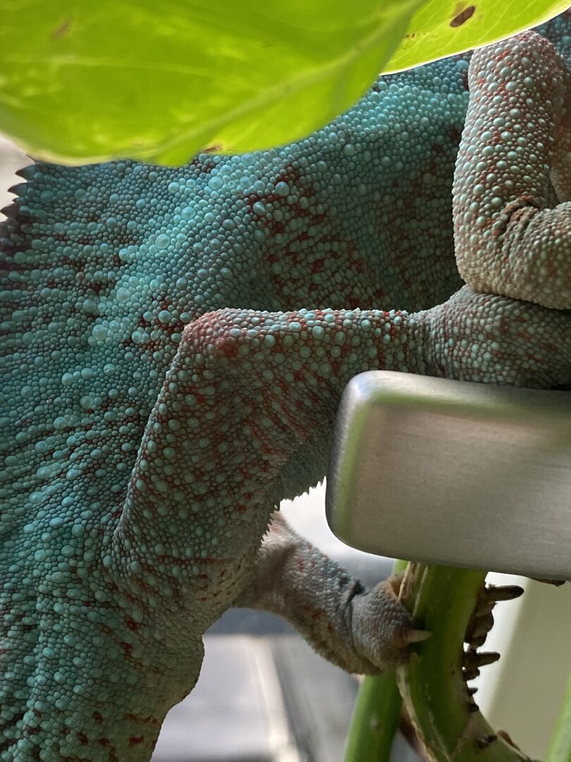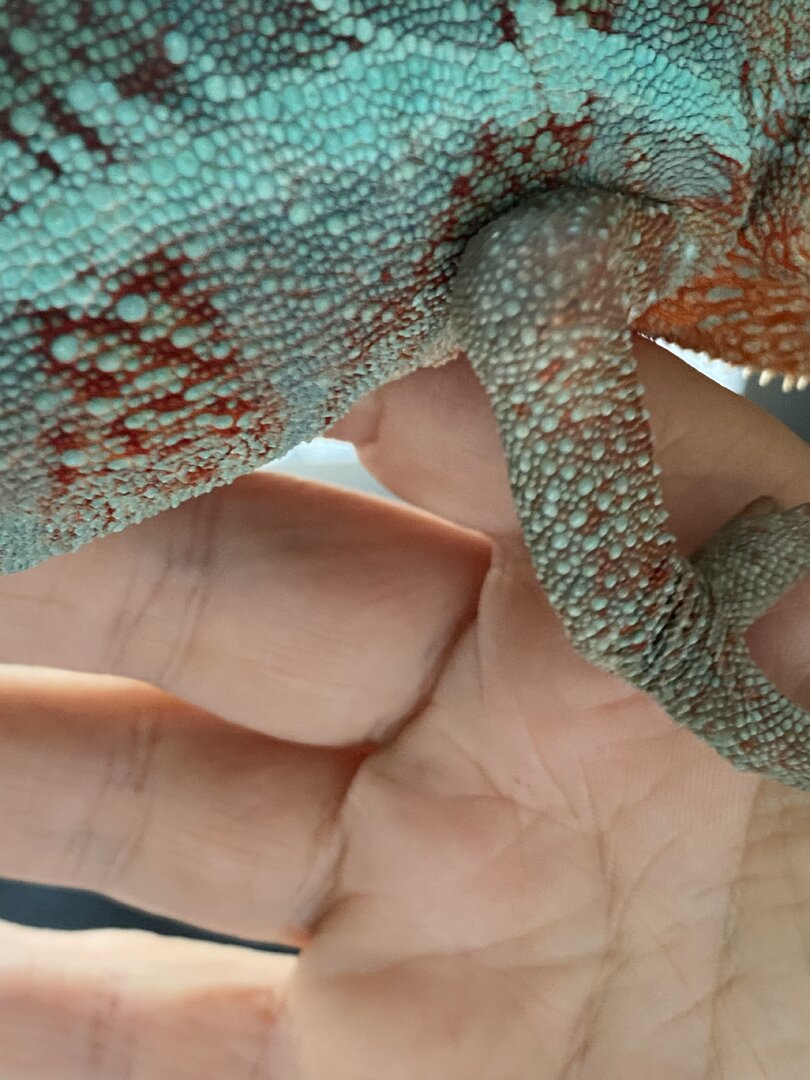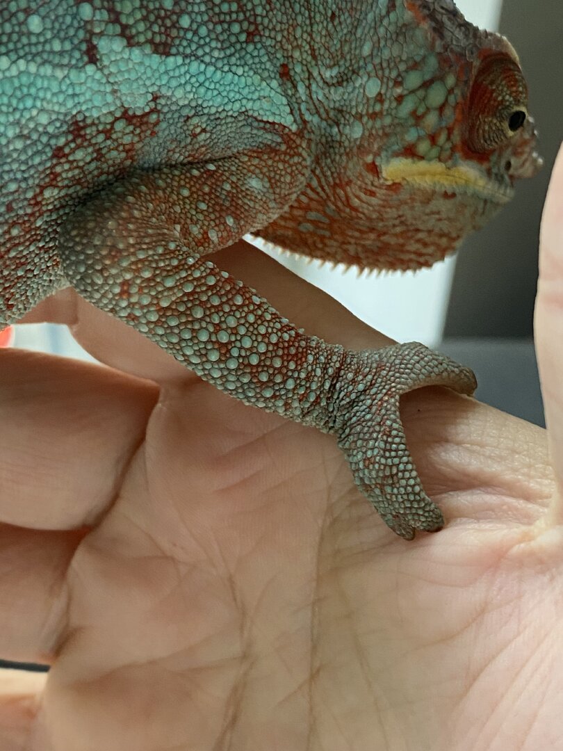 Hello, my Cham is not using his front right foot for the last 2 week or so. 3 other legs have a very strong grip and active. But front one is avoided unless he as too. When I touch it he pulls away.