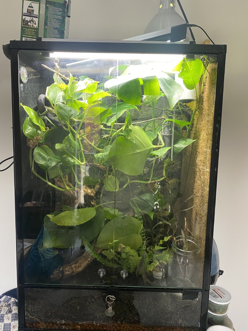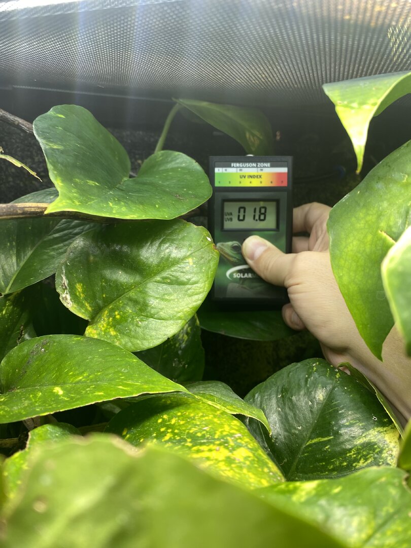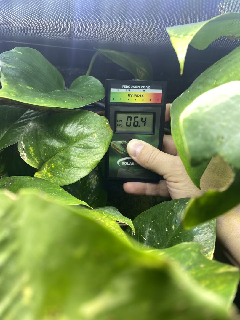 Lighting - Arcadia T5 12% and Jungle Dawn. Plus heat lamp.