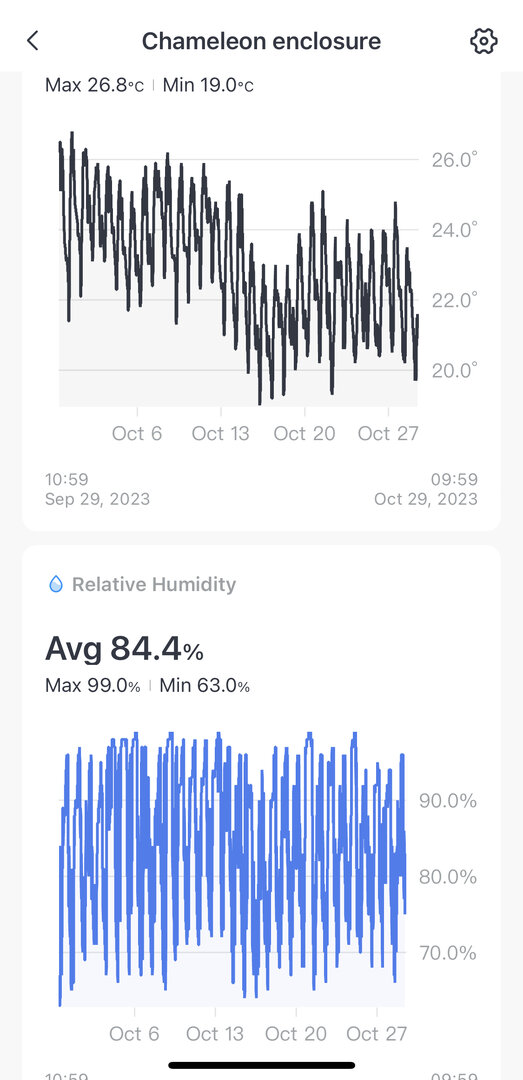 Humidity - It usually sits at around 60-90%, fluctuating a little during the day.