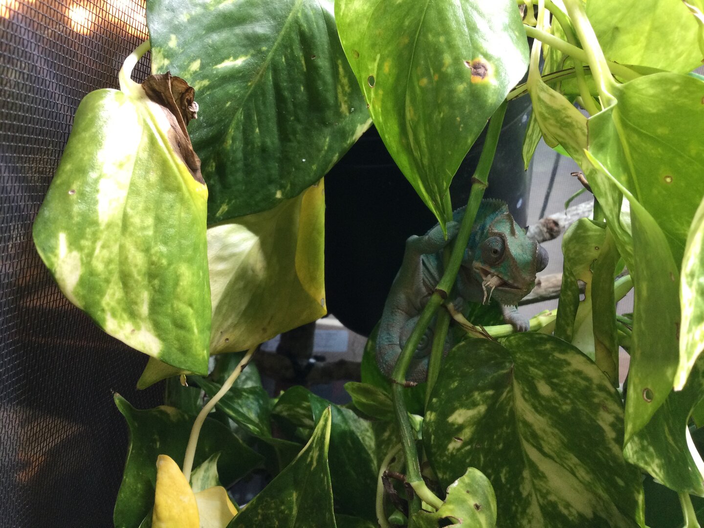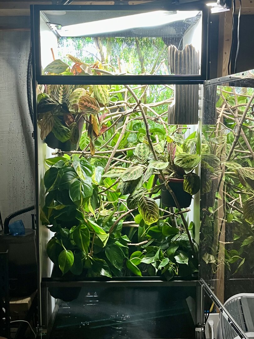 Here is a picture of my feeder run in my Jackson's enclosure.Are the bugs bigger than the space between his eyes? Do you have a feeder run? Some of my chams eat better out of their feeder runs rather than the bird feeder cups.