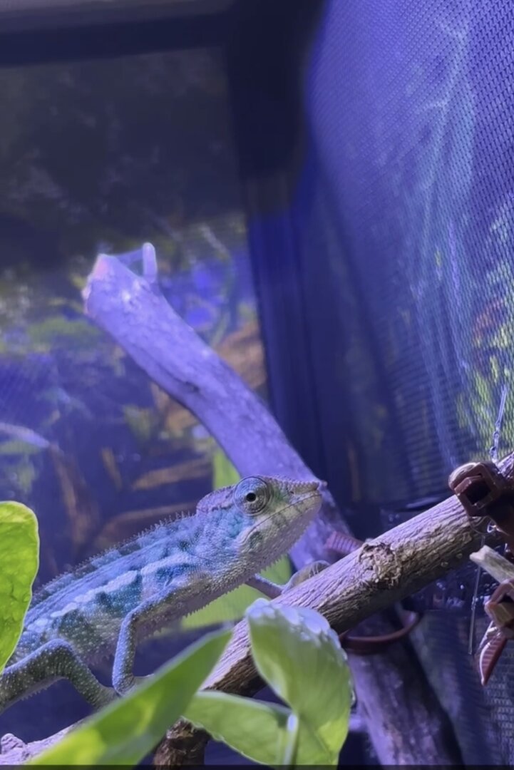 Also looks like you might be running purple/blue LED lights around your room. Make sure you do not run red ones, while they are farther away they can cause issues for their eyes.. Also you want to turn those off the ones you have as well at night when lights kick off on the cage. Need 12 hours light and 12 hours total darkness.