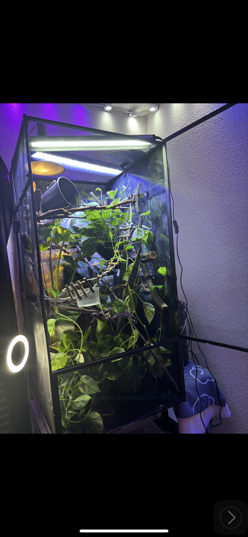 Thank you for the advice!!!I agree with @SteveH and additionally you do not want the ring light at the bottom. Having lights situated like that is going to make the cham want to go to them. You want them to bask where they have the UVB and the heat they need rather than the led light you have at the bottom on that side panel.