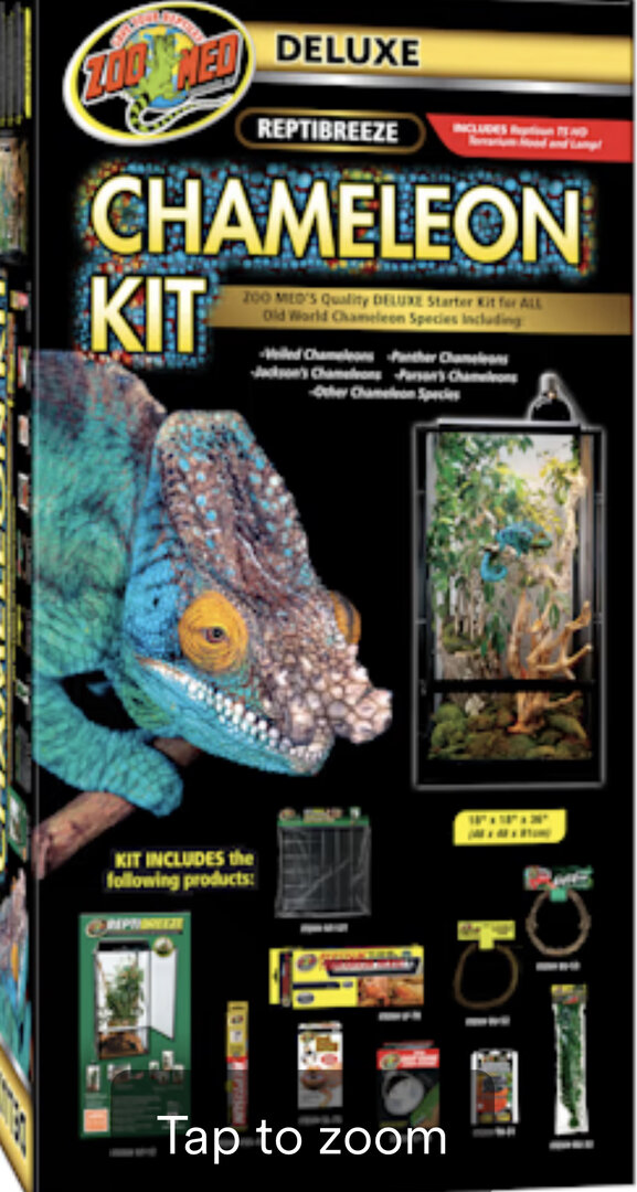 Hey everyone, great news! Zoo Med has a 18” x 18” x 36”chameleon kit for a fully grown male Parsons chameleon!! What could possibly go wrong with stuffing the world