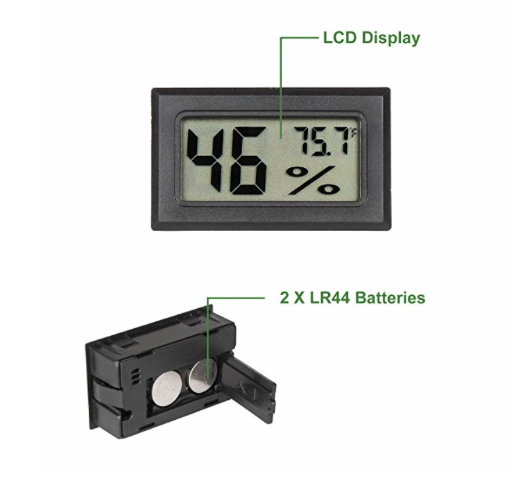 I buy the digital hygrometer/thermometer combo off of Amazon they are ~10bucks and are reliable as long as the battery works. Whenever I've gotten weird numbers I change the batteries and they go fine again. I put two in each cage one at basking level and one in the lower plants so I can see the whole range of the cage levels at a glance.