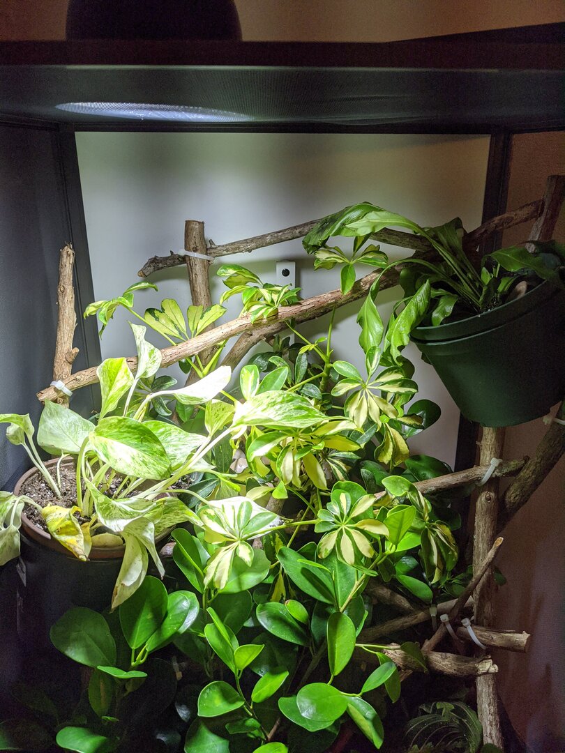 - Plant people I would love your advice! I want to have plants at the top of the cage that trail down - like creeping fig and pothos, but those don't seem to be doing well. Maybe they're unhappy being so close to the plant light?