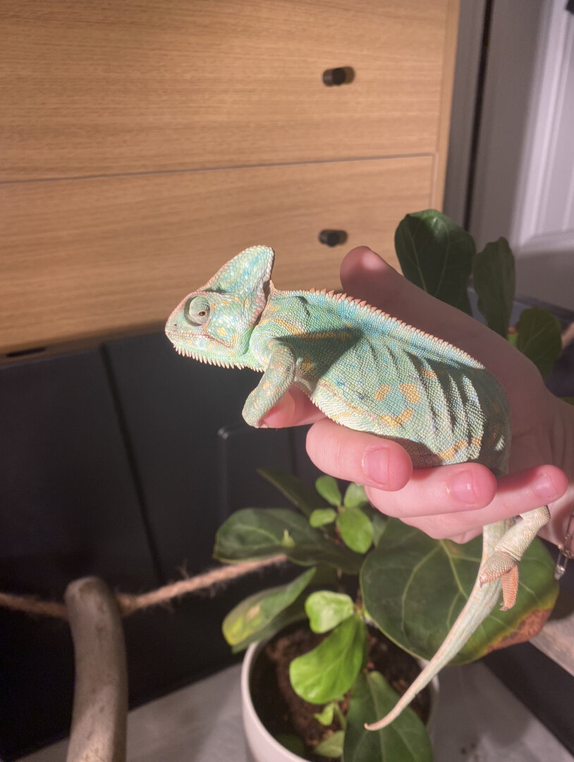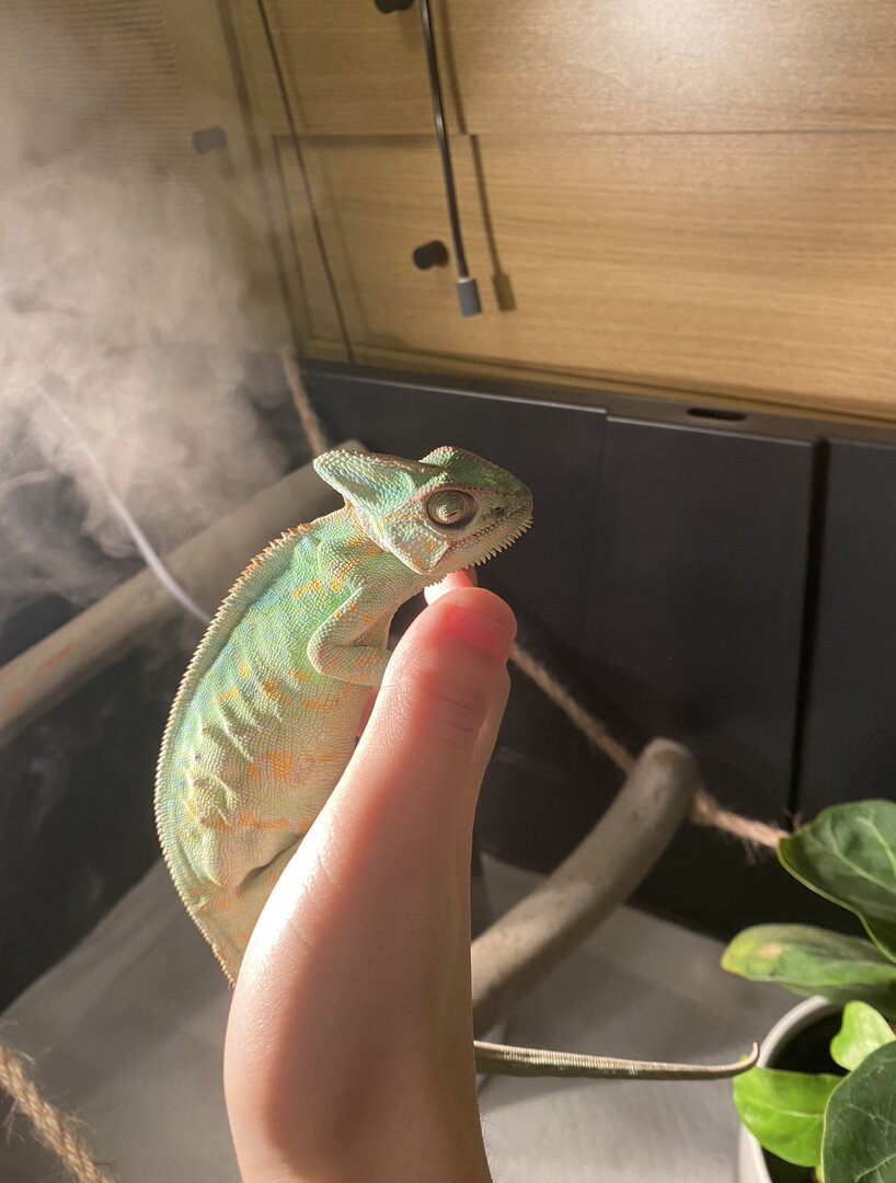 My chameleon (Creeper, 1 month away from 1 year old, female) recently stopping drinking water and got pretty unwell, i upped her water and humitity and she went back to normal. Just to get sick again in a few days. Her eyes have sunken and she hasn’t been eating. I figured it was dehydration and have been setting her little tree in the shower with her to spray water on the leaves near her (but not directly on her) for three days and have started forcing hydration on her today. I started using wax worms for the first time because i heard it would be easier for her to eat than crickets and super worms (her usual diet)(7-9 crickets and 1-2 super worms a day) She started spitting them out/ throwing them up so i though mashed bugs might be easier for her to eat and to feed her through a syringe like how i give her the water. she threw up once and has started keeping her mouth open for about 5-10 seconds at random (maybe 2 times a minute?) and black stuff is coming from her nose. I have 0 idea what the black stuff is ( just started happening about 30 minutes ago) but for about 2 days she keeps her eyes shut when she can and her grip has gotten horrible. I love her so much and i feel so horrible she’s gotten to this state, i wish i payed attention faster. i had no idea she stopped drinking and brought her to my local exotic shop (to see if they could help me identify any problems and help at all) as soon as i noticed she wasn’t eating but that was 3 days ago and it seems it’s a bit late. I’m not giving up hope and trying my hardest to take care of her. i’m praying someone here can help me, especially with the black runny nose considering i can’t find a thing about that.
