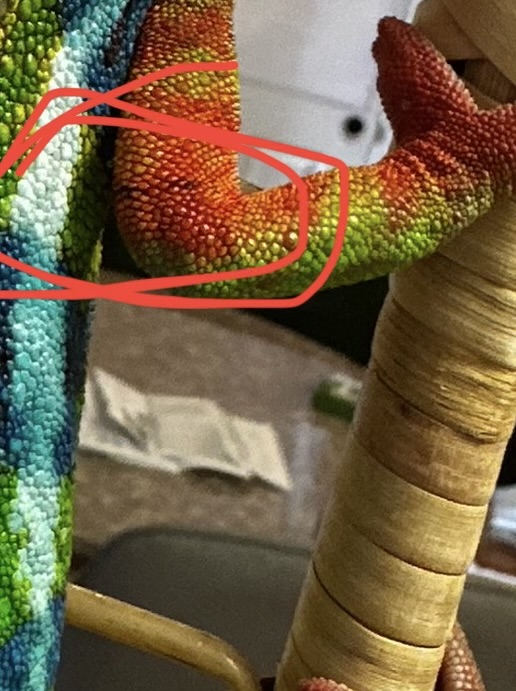 Hi guys! I noticed my chameleon has this black stripe on both arms that has gotten more defined over the past week and I’ve noticed he’s been itching somewhat frequently. Could this be mites?It is not a burn