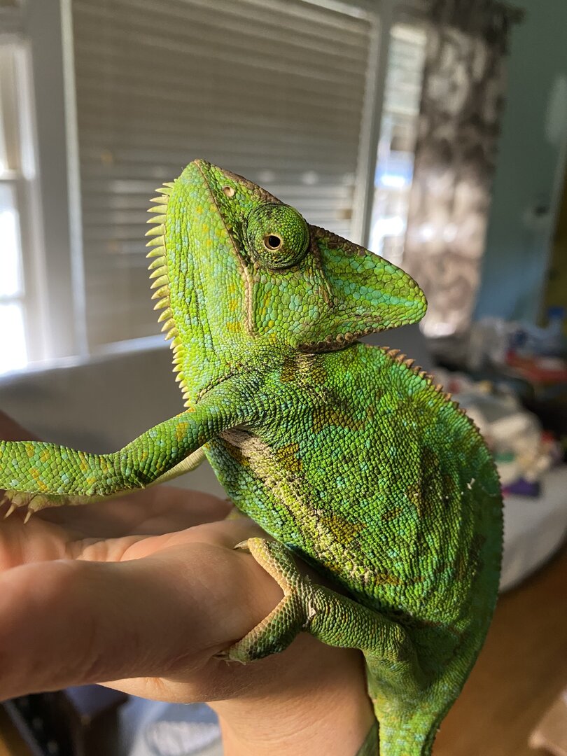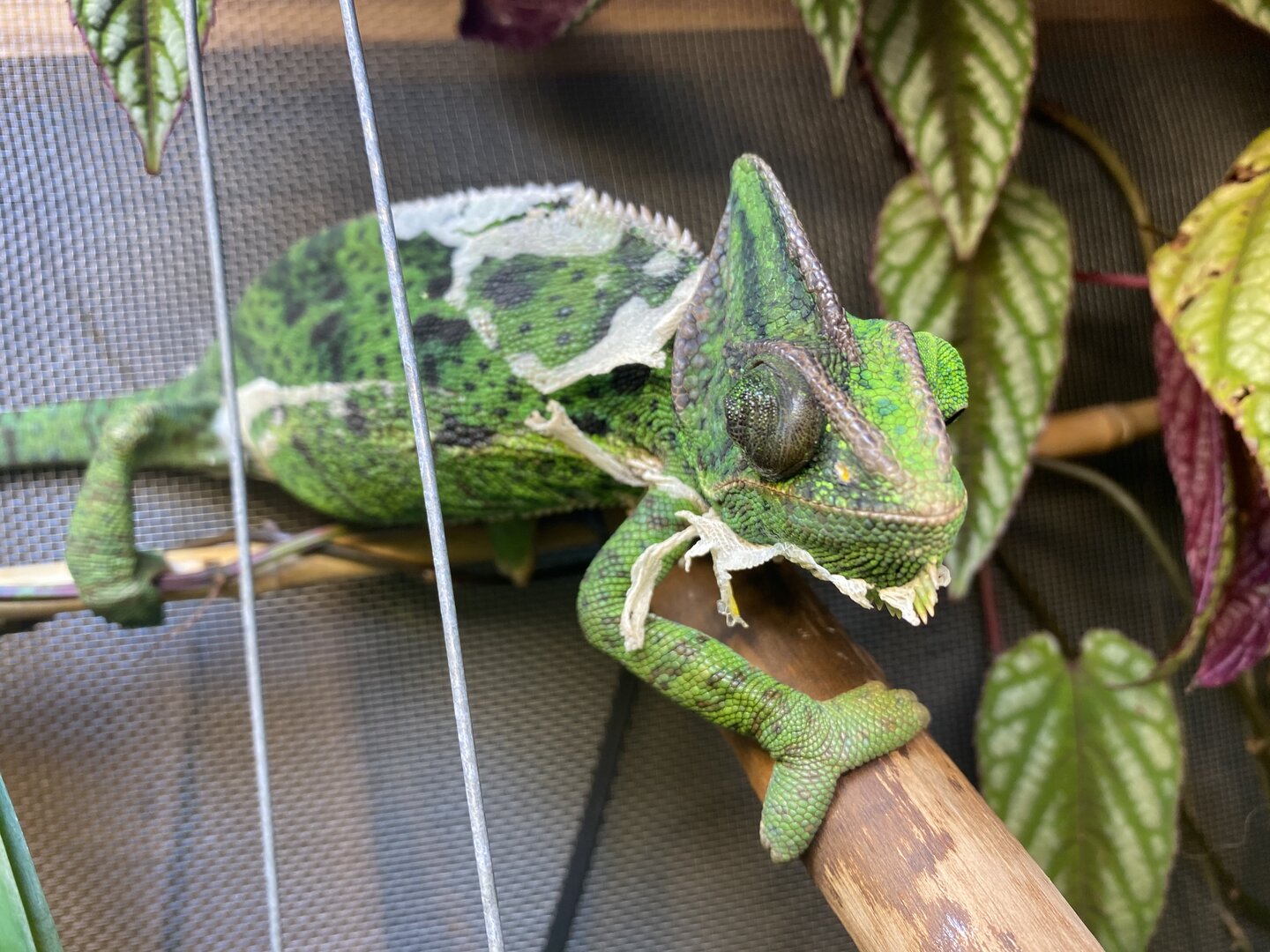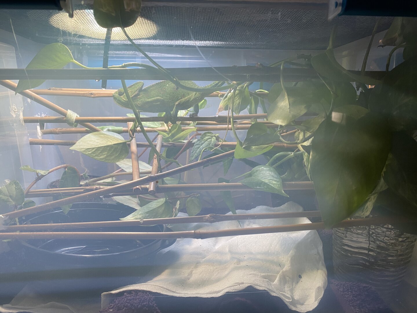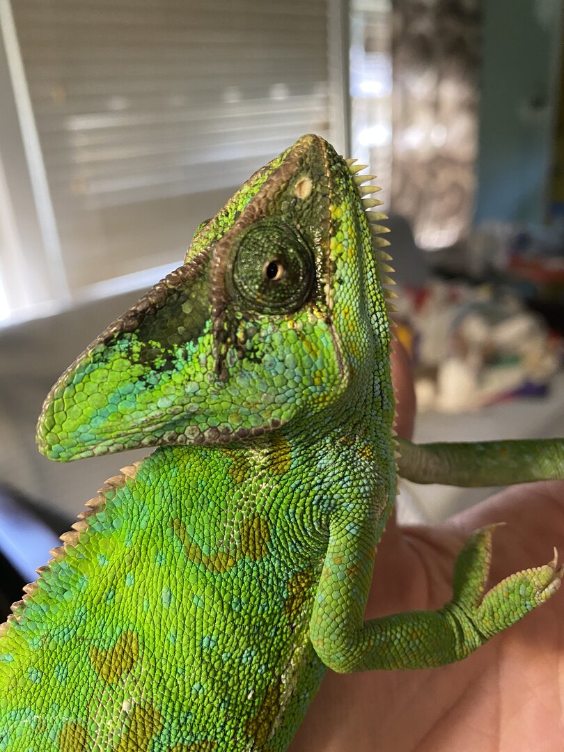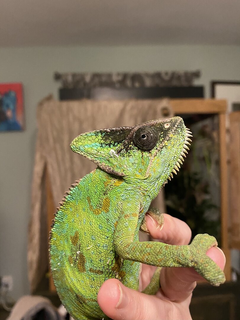 Over the last few weeks the swelling has gone down but her eye is still black. I’ve determined she is blind in the right eye now. I’ve had to move her to a hospital bin from her chameleon mansion as she was falling because her depth perception is off and she was loosing her balance scratching at her face.