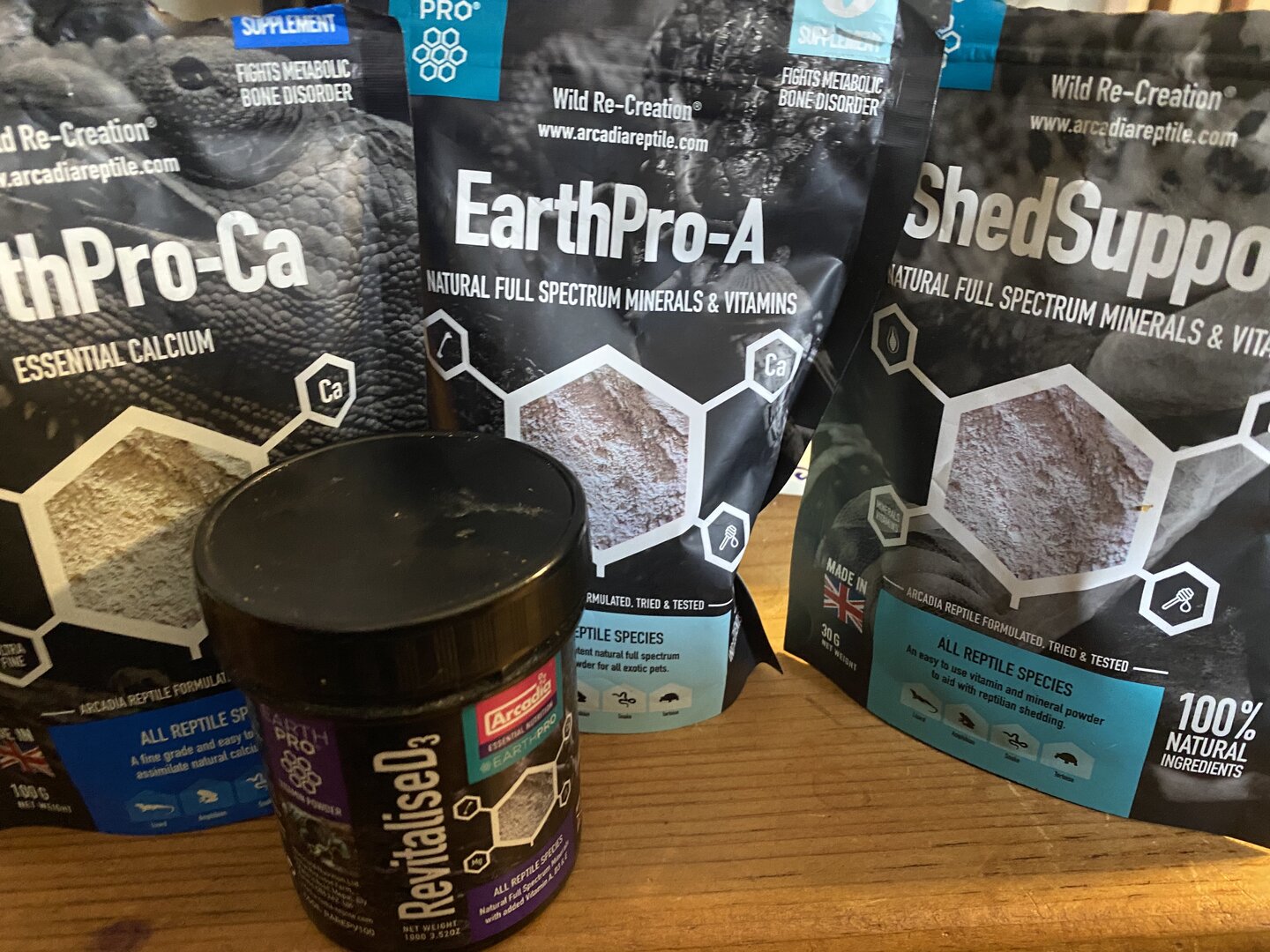 Arcadia earthproA dusting every feeding except: Arcadia CA twice a week(added to earthproA)