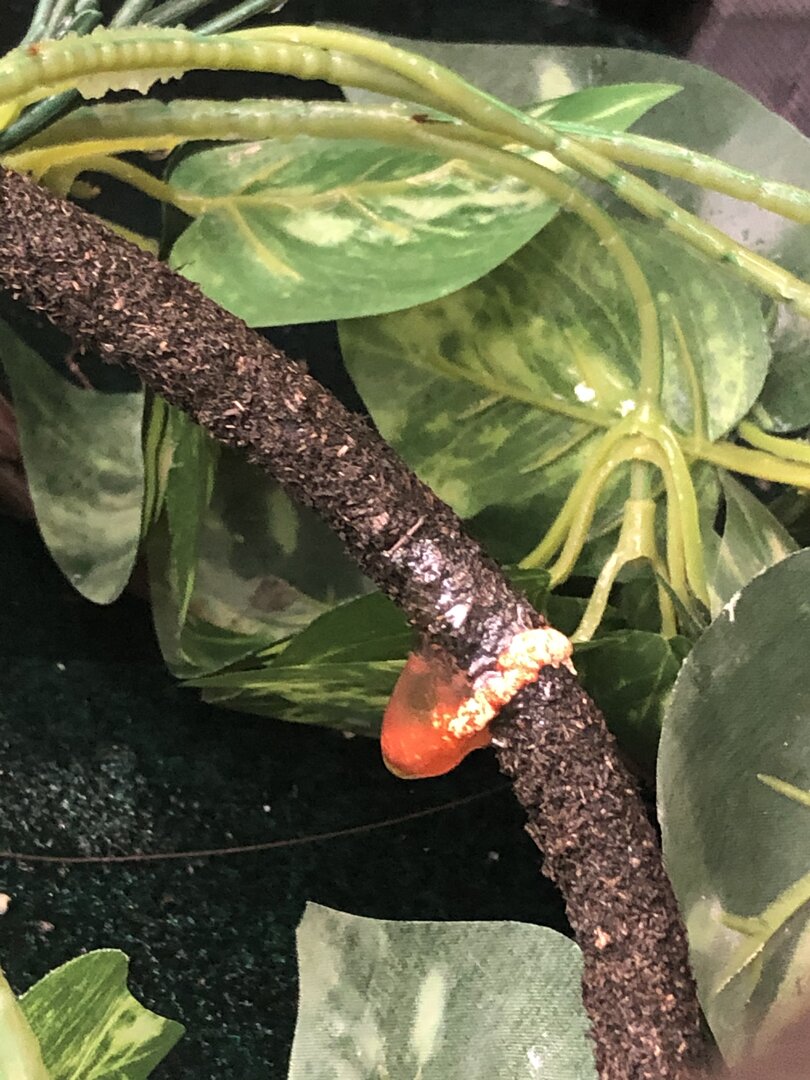 Hey guys. I noticed this bloody stool in my jacksons cage today. I did feed him two large superworms today and im wondering if that could have something to do with it? he has been eating heavily the past few days. Please let me know what I should do and if a vet visit is necessary.