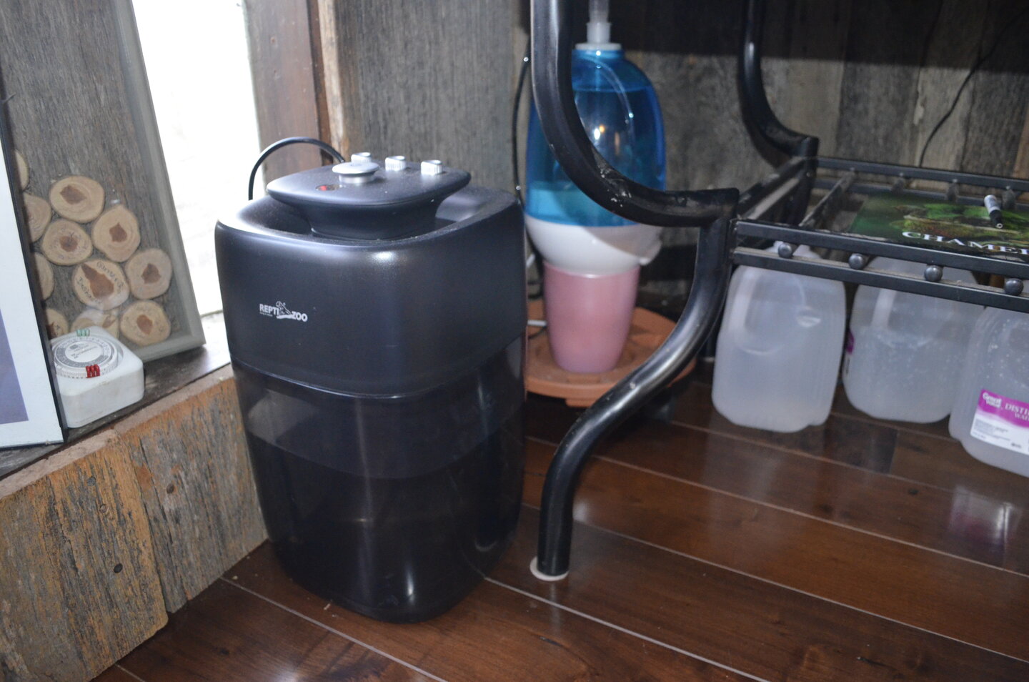 - We hand mist twice a day a few minutes sometimes we see him drink sometimes we dont we have a reptizoo automatic mister its really nice because u can just pour water right in the top of it i have it set to go off every 2 hours for about 30 sec. the reason for doing it so often is its winter time here in Missouri and we heat with a free standing insert fireplace that is right next to his cage it blows the heat away from his cage and it does not get to hot even being right beside it but it does absorb a lot of his humidity we are trying to accomplish