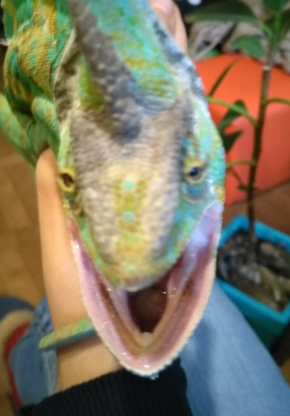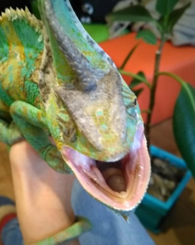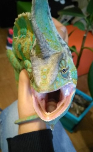 I've just noticed these brown spots on Winston's teeth, both on upper and lower jaw. He's 1-1.2 year old and acts normal, eats and drinks as usual, moves around a lot and seems fine. He has all required lamps, temperature is around 81 and humidity around 50-55%, all his feeders are dusted with calcium without D3 and i give him calcium with D3 every other week in turn with multi vitamins. I feed him mainly with crickets and roaches, occasionally superworms and mealworms as a treat. I mist him every day with warm water. He's shedding these days and a bit grumpy, that's how i noticed those spots, cos he almost never hisses and gaps at me when he's in the mood, so i don't know exactly for how long those spots are there..