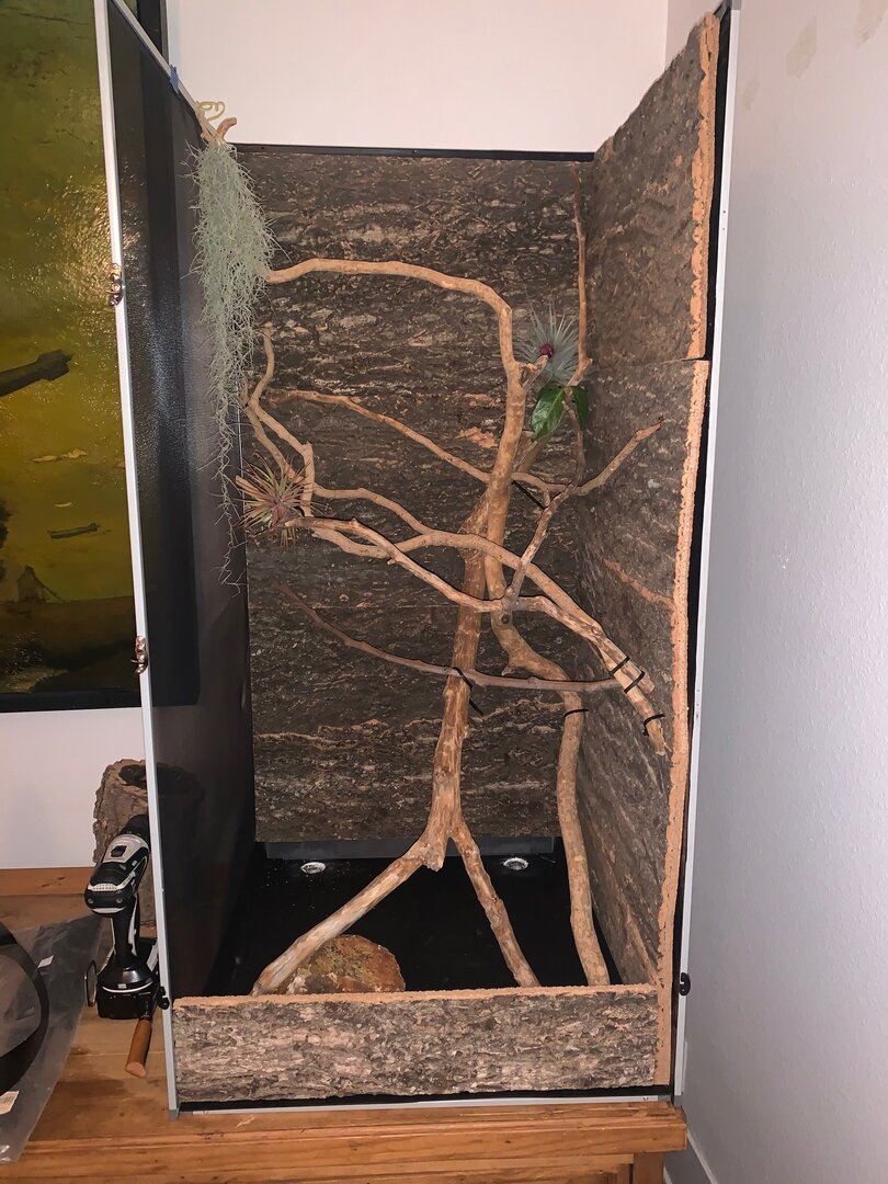 Covered the back two walls with black vinyl and some waterproof tape @ the seams to keep humidity up as I live in SoCal..