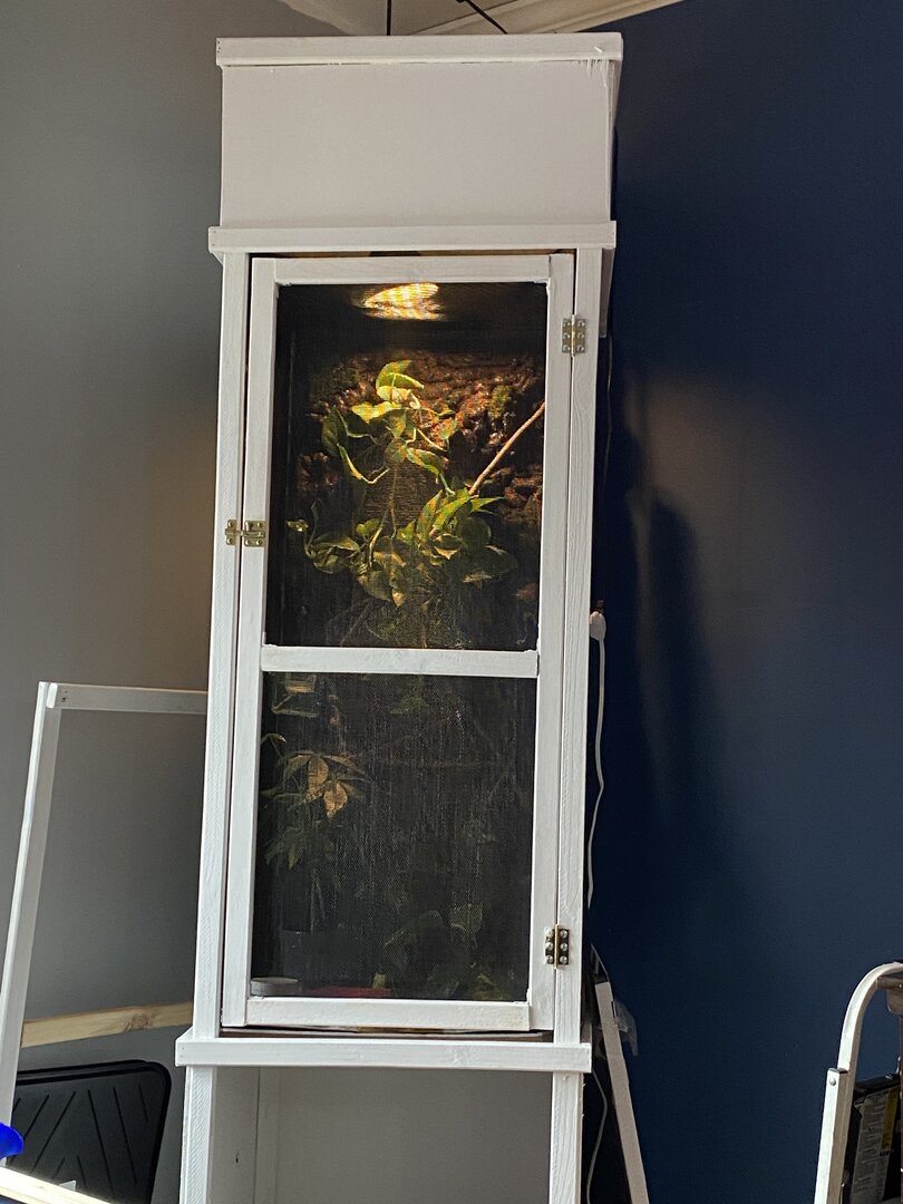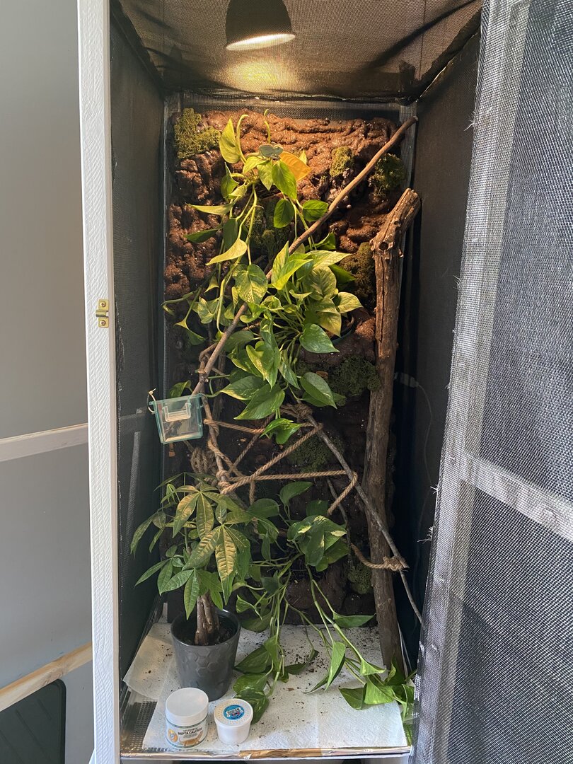 Hi so me and my wife bought ourselves a Cham during the quarantine, and instead of buying ourselves a enclosure we decide to build one! I have not setup the misting system yet still waiting on it to be delivered but I would like some feedback on what you guys think, or any changes I should make. Places and Thank