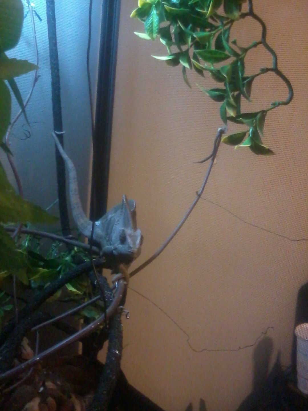 Yeah, I was planning on getting more plants for him, as well as vines. I will have to order another cage online, because the pet stores near me only have a medium sized cages or smaller. Though I was told that Veiled chameleons are poor hunters, and that is so not the case with Fredric. As soon as I put crickets in his cage he moves really fast, when he wants to. lol. I have tried to hand feed him, but he gives me the evil eye, so to speak. His cage is in my bedroom, because I am afraid that one of the cat's will figure out how to open his cage and try to kill him. She has killed a scorpion that my boyfriend had. I really don't want Fredric to become another reptile/animal that she killed.