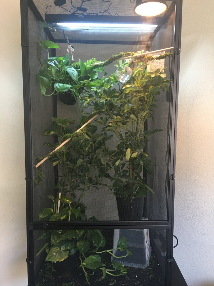 - Watering - I mist cham until all leaves have droplets on them. i do this at 7am, 3pm, 6pm, and maybe 9pm. i don't see him drink as I have to leave right after i mist. I just got him a dripper.