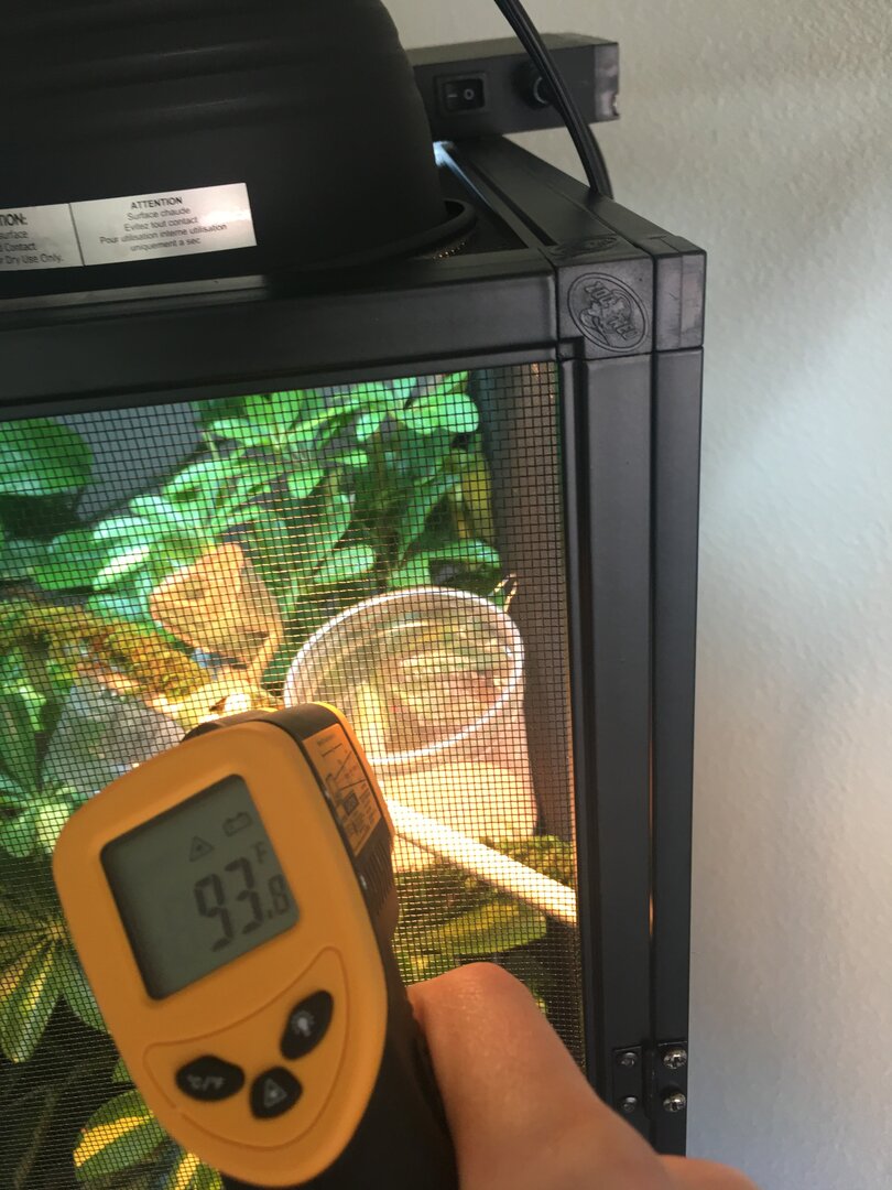 - Temperature - Basking spot is 90-95 and room temp is 72 degrees, so same at night. I measured basking spot with laser thermometer thingy.