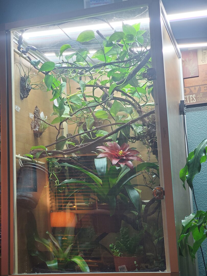 Thank you very much that helps my brain relax a bit. I have lots of pathos vines that go all directions in the hopes that will be the main highways to get around, there is think and thin branches. I'm still working on raising my uvb light up a few inches but having a hard time figuring the exact way that needs to be done for our home and his home.