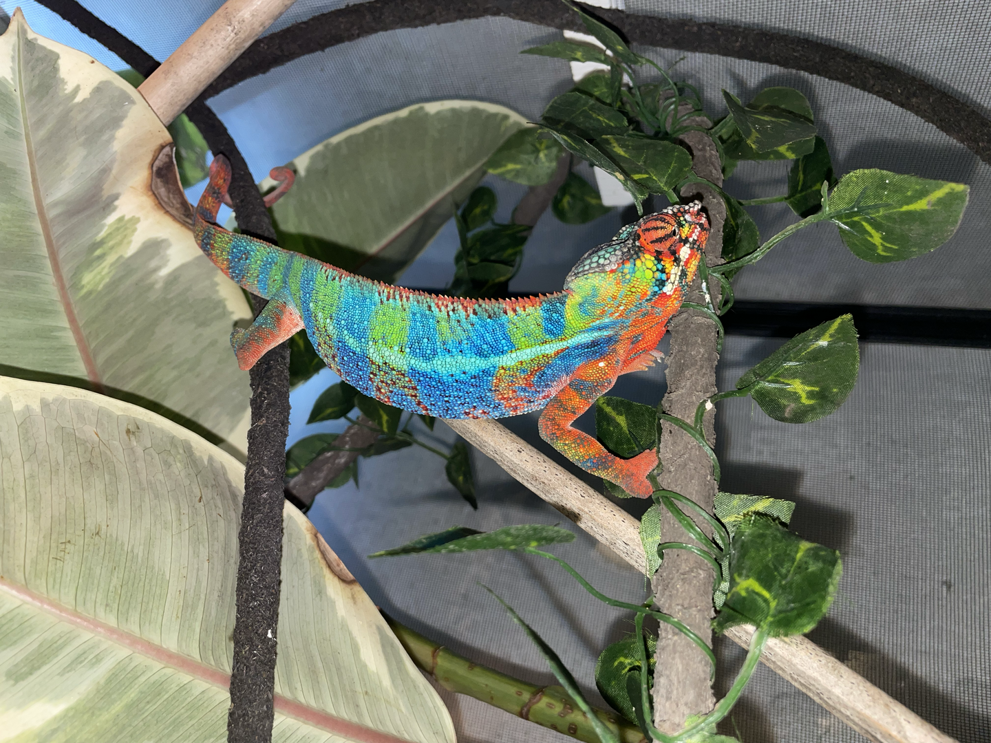 Uhhhh he's georgous and huge. Wow he grew fast, so lush and vibrant. BeautifulHercules got his first grasshopper today and he fired up with more colors than I had ever seen. Look at those battle stripes on his face!!!View attachment 347685View attachment 347686View attachment 347688View attachment 347689View attachment 347690