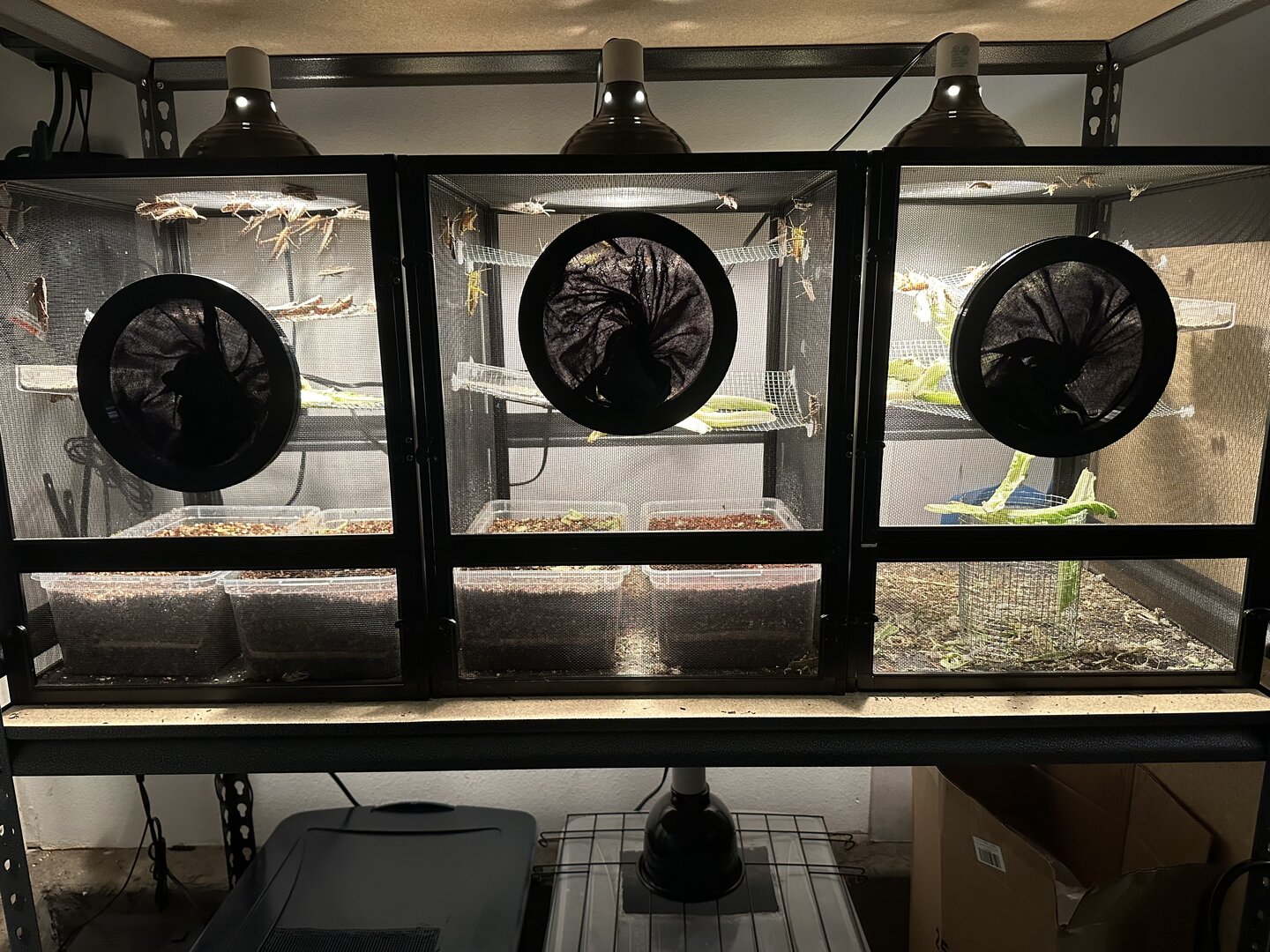 I will be moving the two middle bins to a separate cage for possible hatching of eggs.