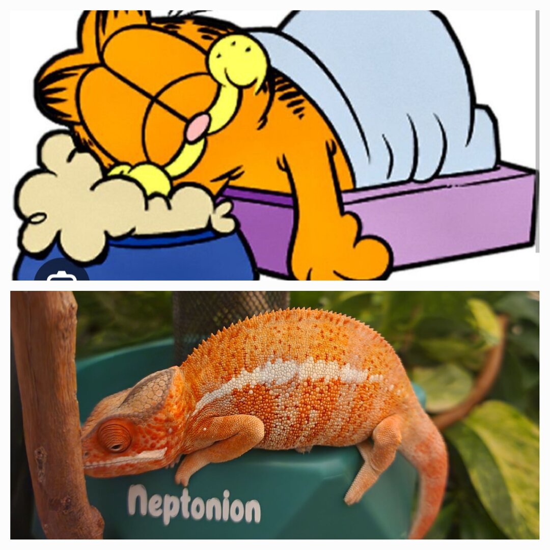 No way I’ve had nothing but happy and lovable chameleons so far. How boring is that? Bert has an attitude and that’s fine by me. He is cage aggressive and rushes down front if I’m cleaning a poop or cutting back pothos leaves. I stand my ground and tell him he’s a tiny baby and no one is scared of tiny babies. Then I continue doing what I’m doing.