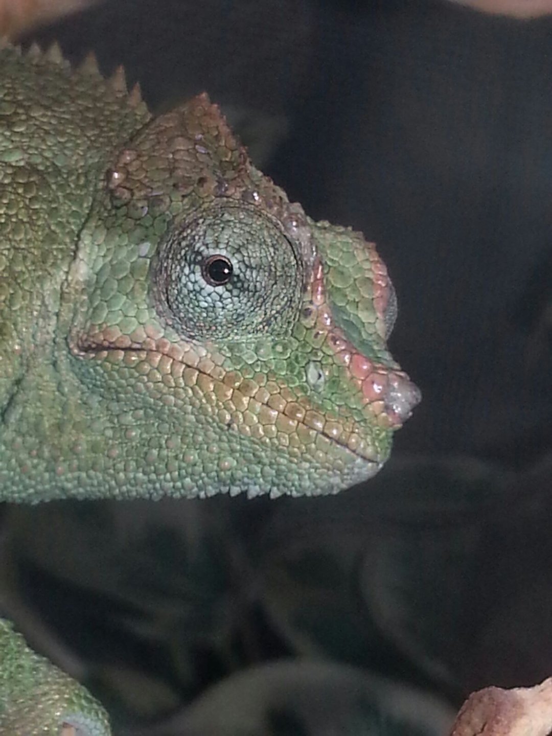 That specimen, while being a male, displays colors somewhat resembles a female Jackson's, it never displayed any coloring of the typical male t. sternfeldi.