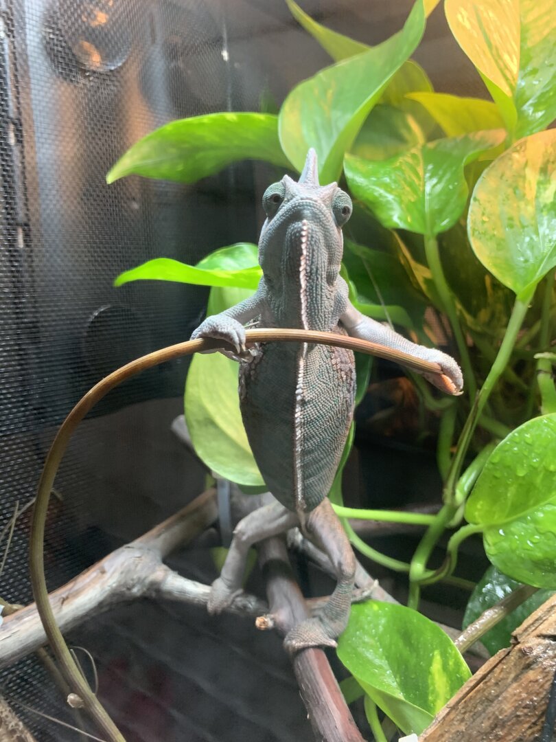 2. Chameleons are EXTREMELY fragile animals. That’s why we spend huge $$ on fancy setups to simply keep them alive. They are cool, and sometimes tough and full of attitude, but are one of the most fragile animals on the planet. Very simple changes in PH (chemistry), atmosphere, and temperature can Damage or KILL them. QUICK. Chameleons also aren’t great at recovering from any kind of trauma. They are notorious for having weak kidneys, which are vital for filtering toxins. Even low water supply can damage their kidneys. With any kind of toxic exposure, they may suffer medical issues for a long time, or die immediately. If they get stressed out even from simply handling them when they don’t want to be handled (let alone trying to paint them with henna), they may mistrust you, for a long time. Once your chameleon mistrusts you, it’s a long journey to get that trust back, IF YOU DO. IF. Capitol IF.