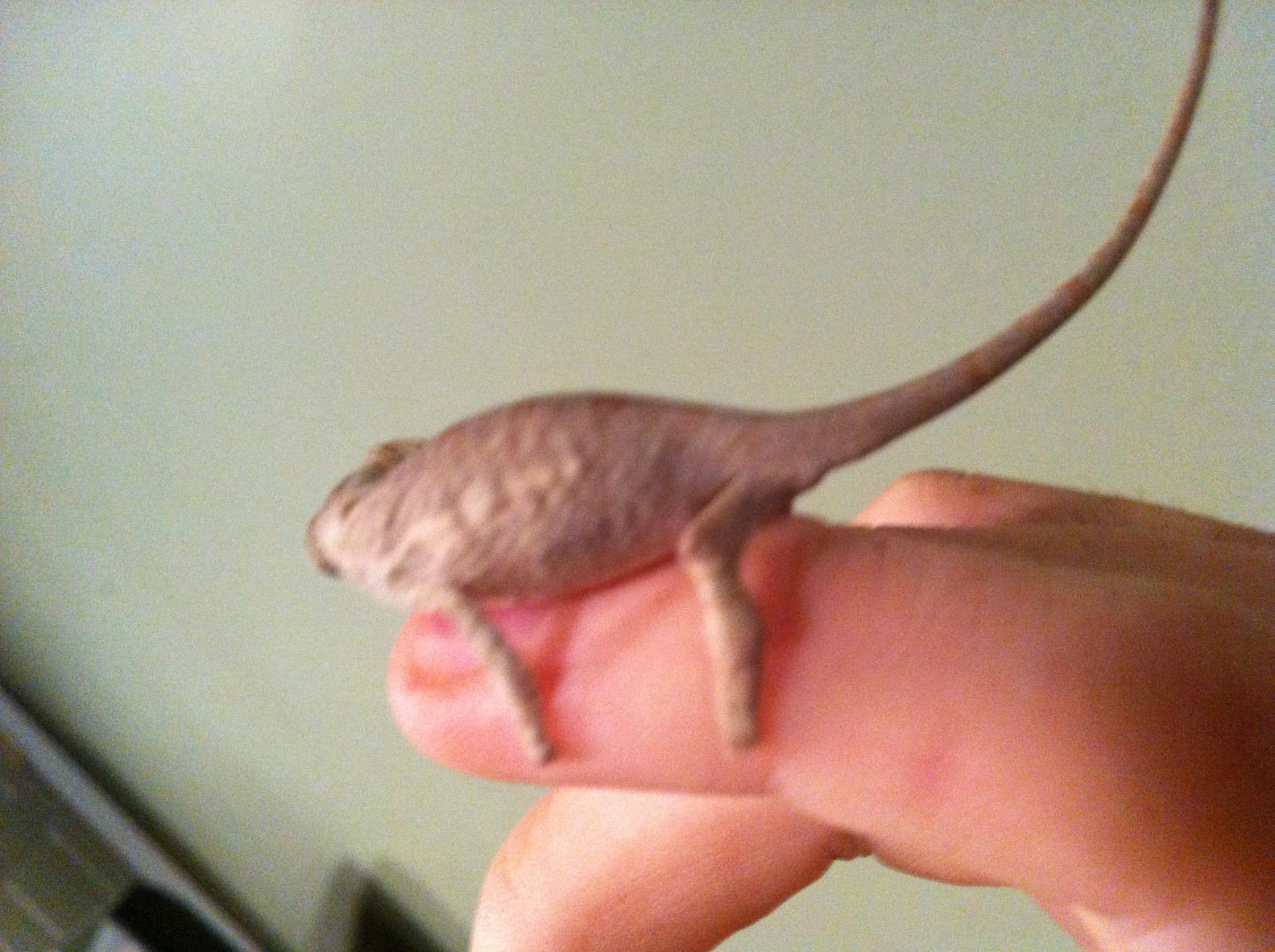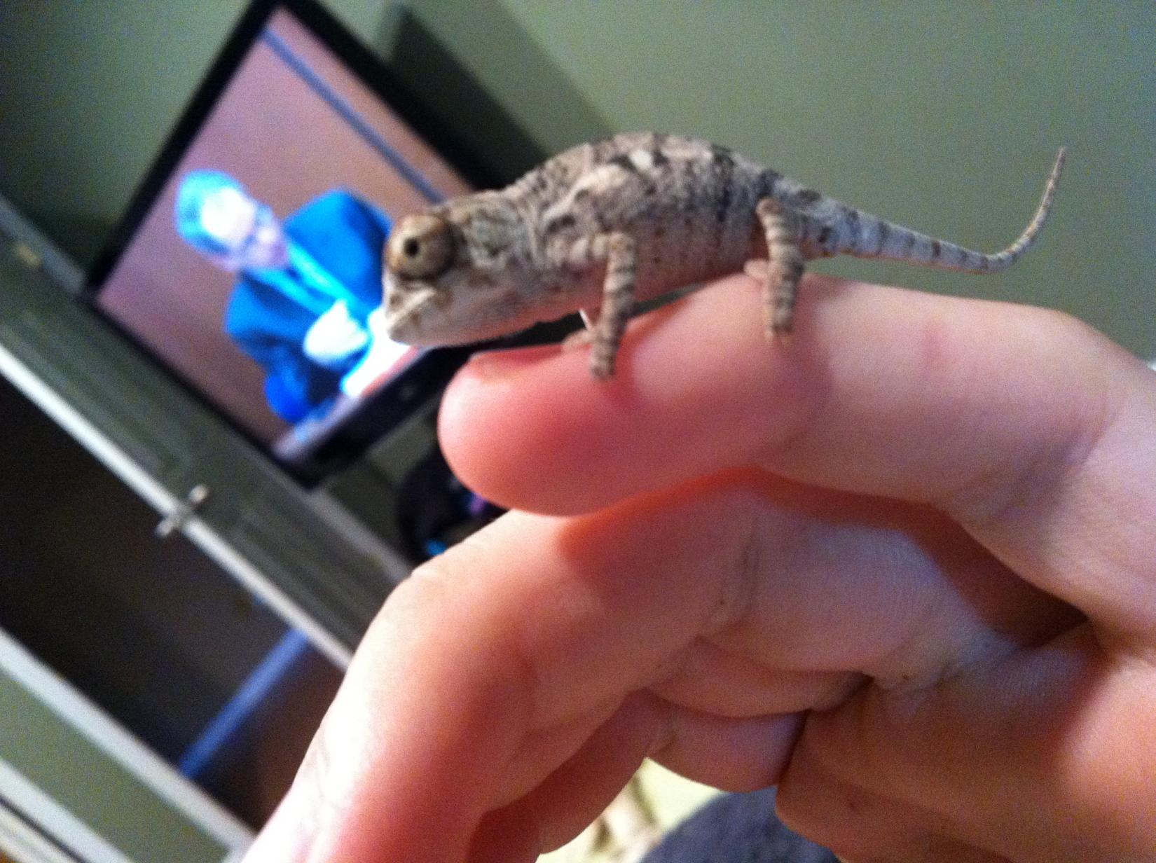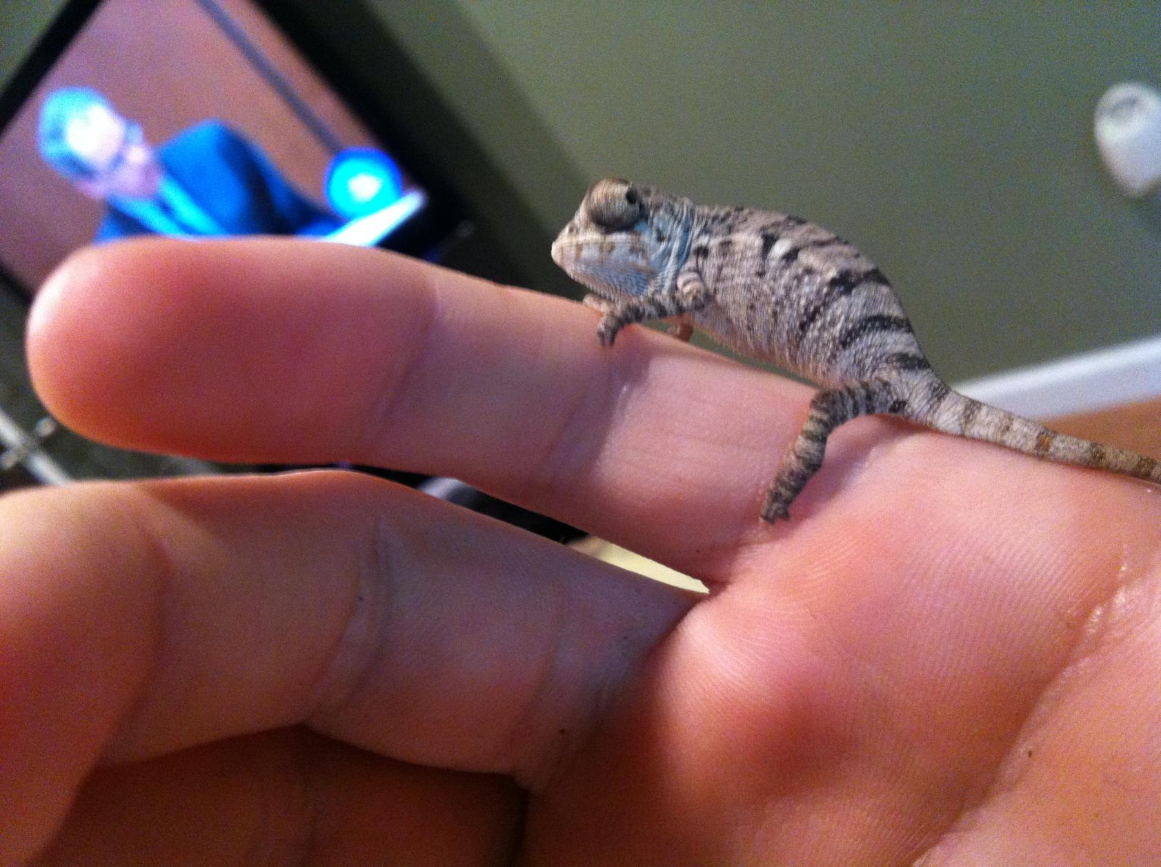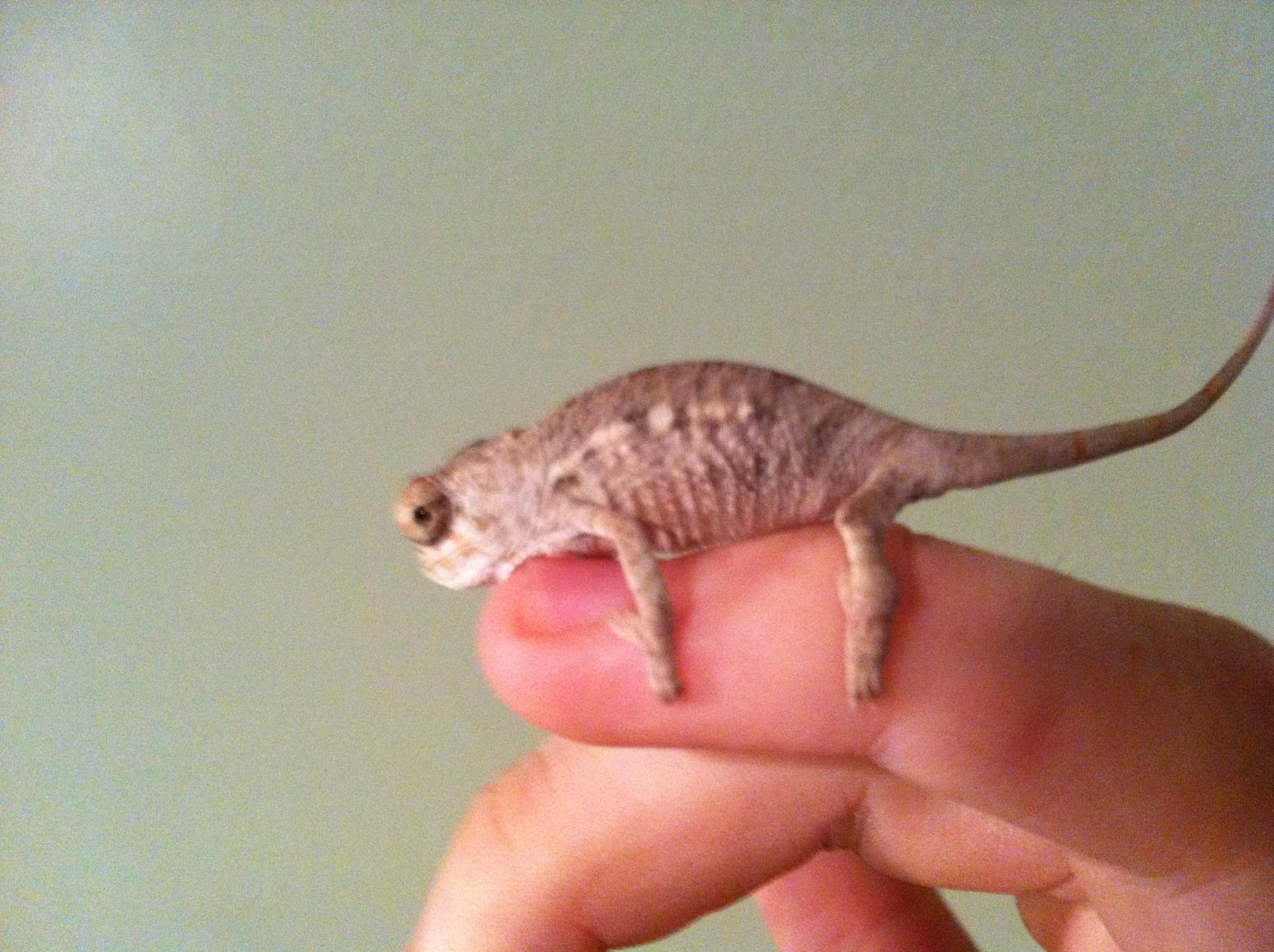 My chameleon is about 2 months old. I tried getting the best pics I could with my iphone will post up pics with my dslr if necessary. Hope these are good enough.