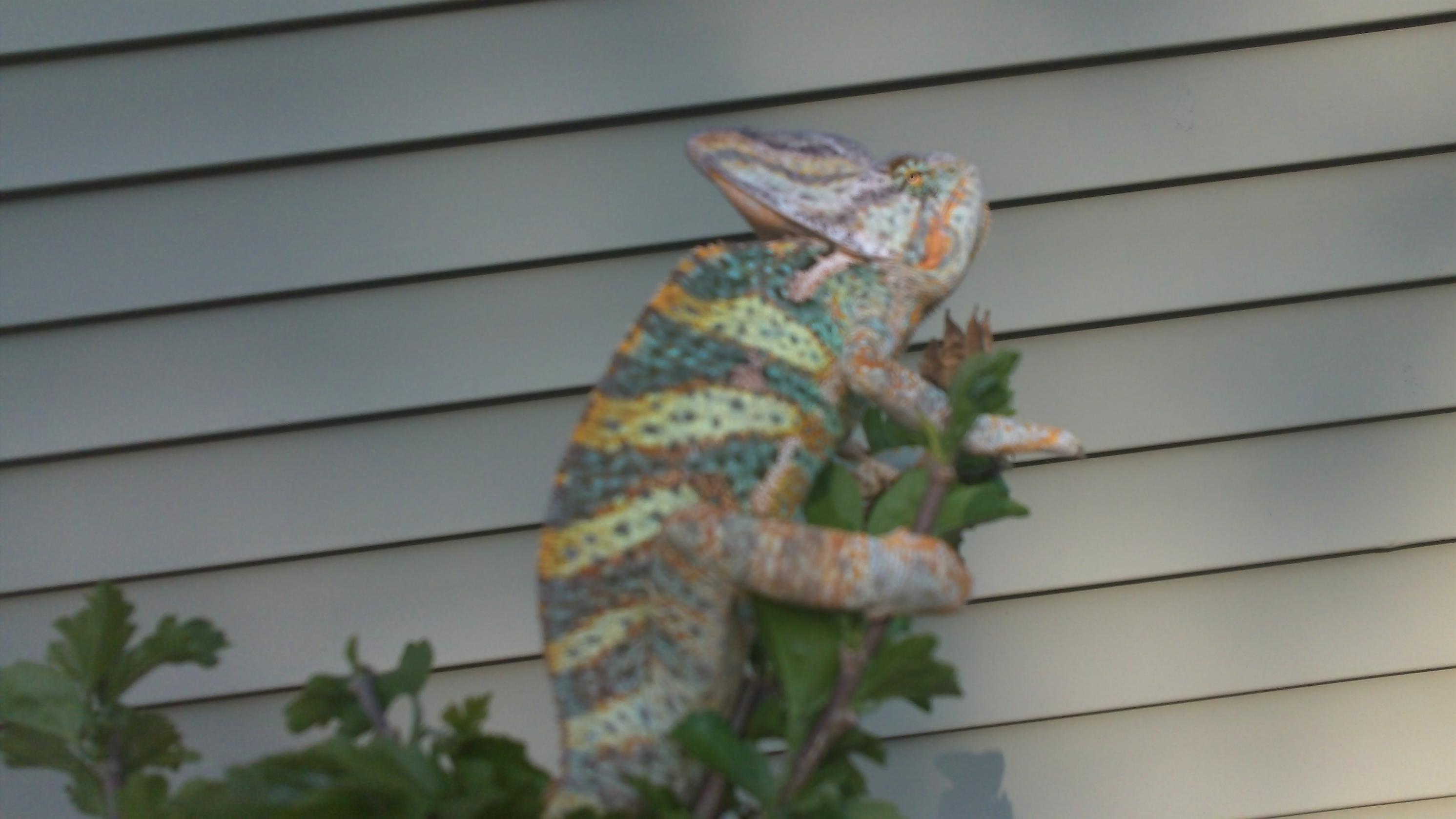 my veiled started showing some serious colors out in the sun yesterday,his side bars turned highlighter yellow.he still has retained shed over alot of ihs body from that friggin pet store, but hes workin at it.