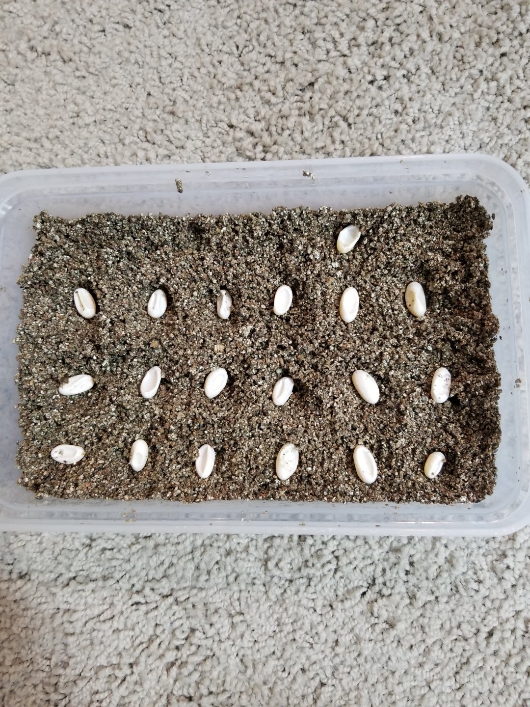 So i am currently attempting to beeed my carpet chameleons and recently my female has laid her first clutch but ive encountered some problems.. she has had a suitable laying bin in her cage the entire time but for some reason she layed them all over her cage instead of burying them. I was out of town friday night and returned sunday afternoon to find them spread all over her cage. Again, this is my first time attempting this, so im not sure whats normal. They appear to be dry and a little concaved. I have attached a picture. Can any members with experience breeding carpets give me any advice?