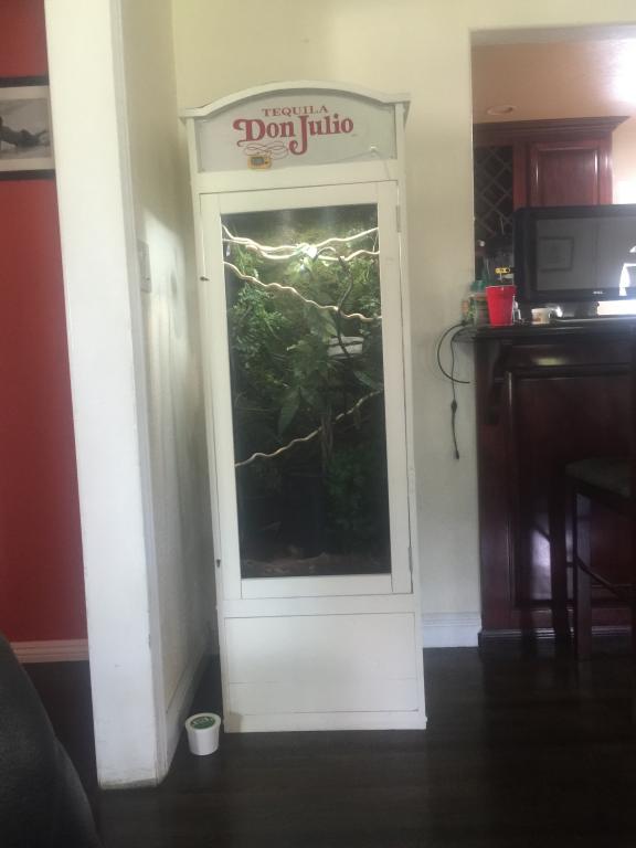 i made this enclosure about two weeks ago, i transferred him from an all screen cage.