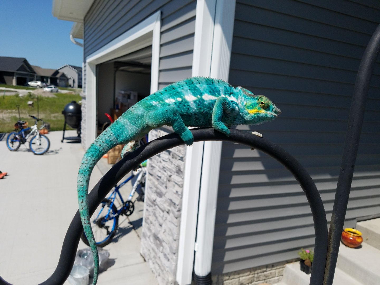 These animals were purchased from Steve at Chameleons International and I received them in mid-May of this year. They are CBB Euro imports with unrelated bloodlines. The male is around 10-11 months old and the female is 6-7 months old. Both are healthy and eating crickets, dubia, and silkworms.