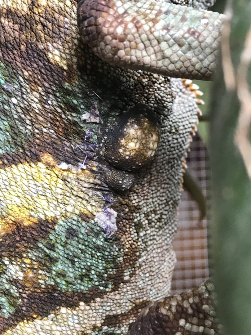 We are lucky in Portland to have a good exotic vet, and when two growths appeared over the past few years, she removed them. The first, on his eye, was removed several years ago and was not cancer. The second one was. The growths came back a few months ago. We don't know how old Paradox is, but he's at least seven and probably a lot older, and I just couldn't put him through radiation or another surgery.