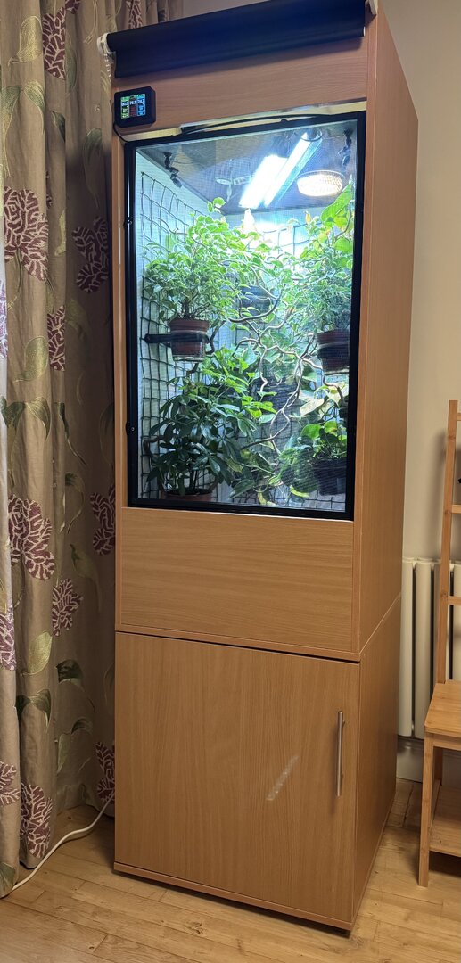 It’s almost like he’ll only eat if there is external movement - like he wants to hide his motion amongst a moving environment. I guess in the wild they can hide their movement among swaying leaves etc, but in his enclosure (in a static room) the only thing moving is him!