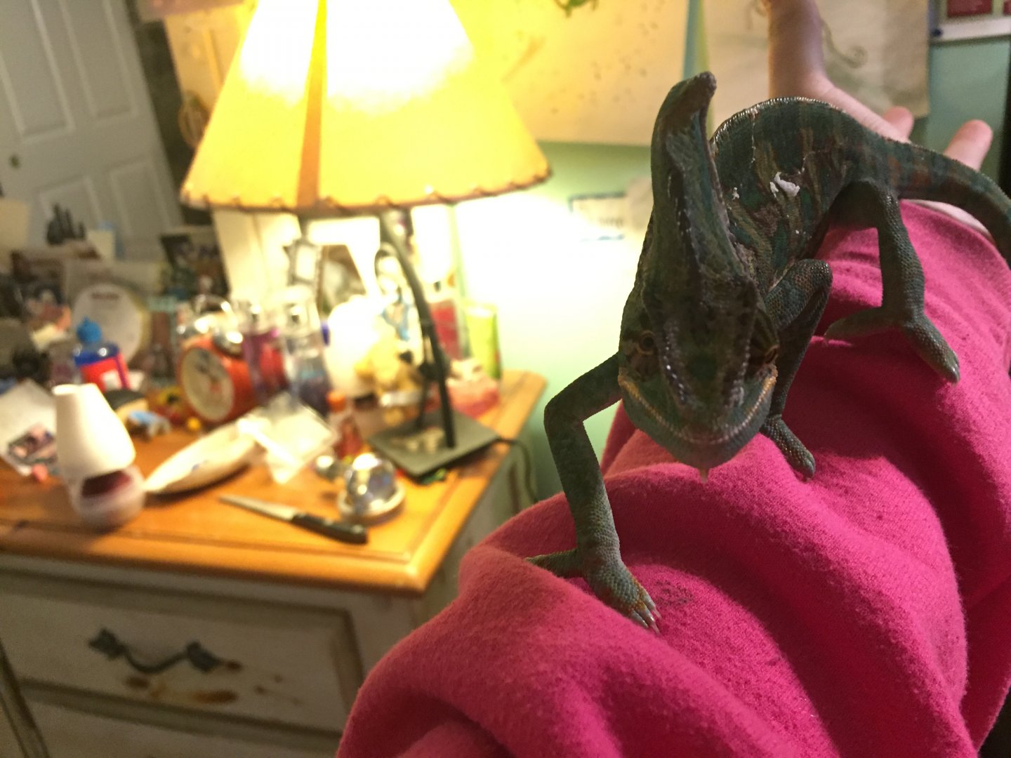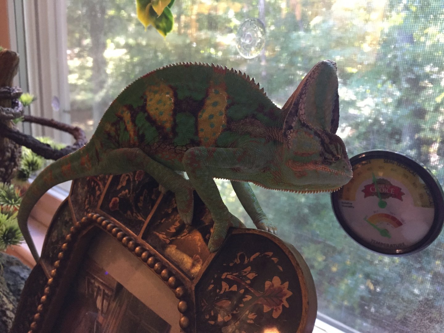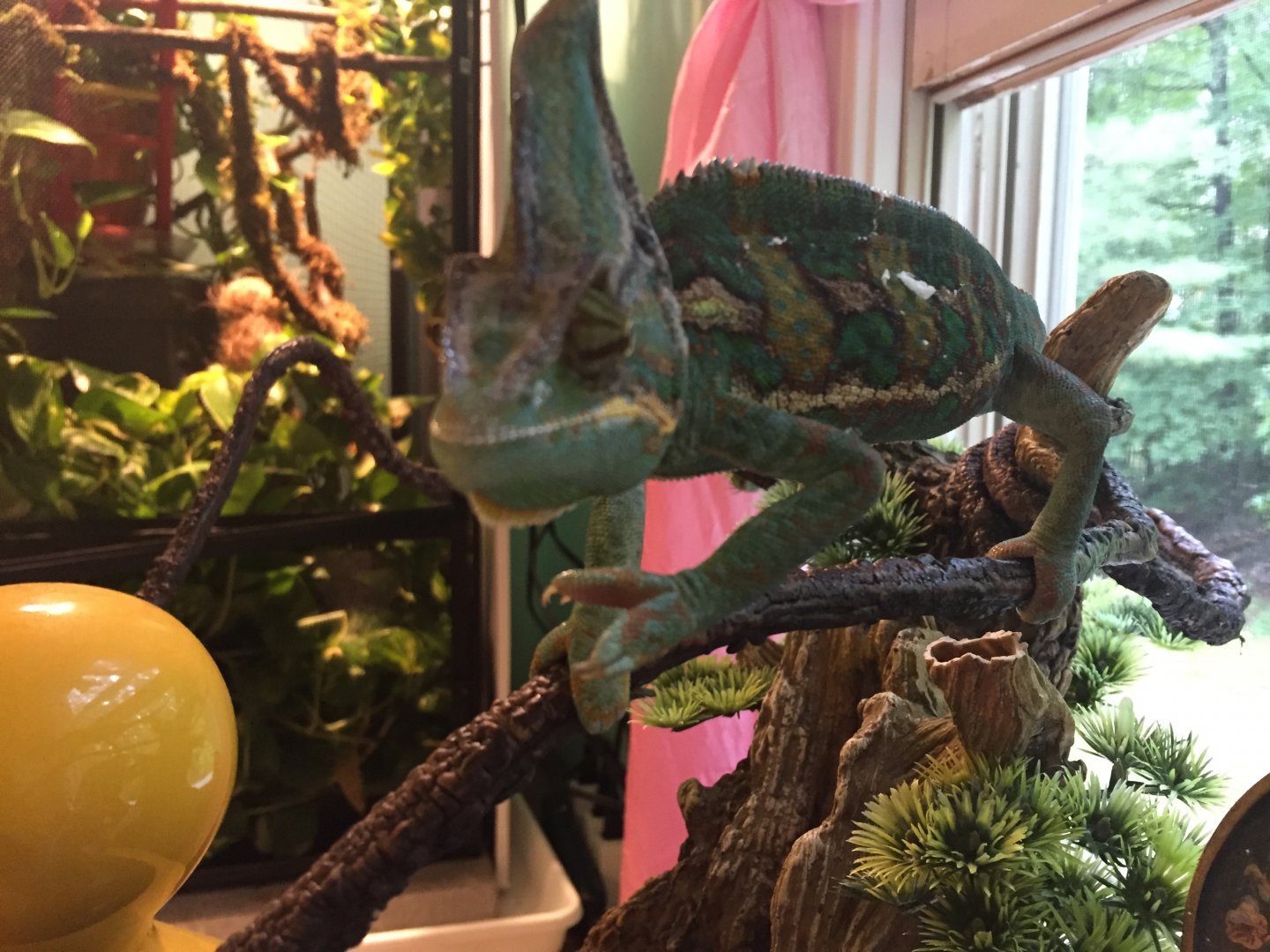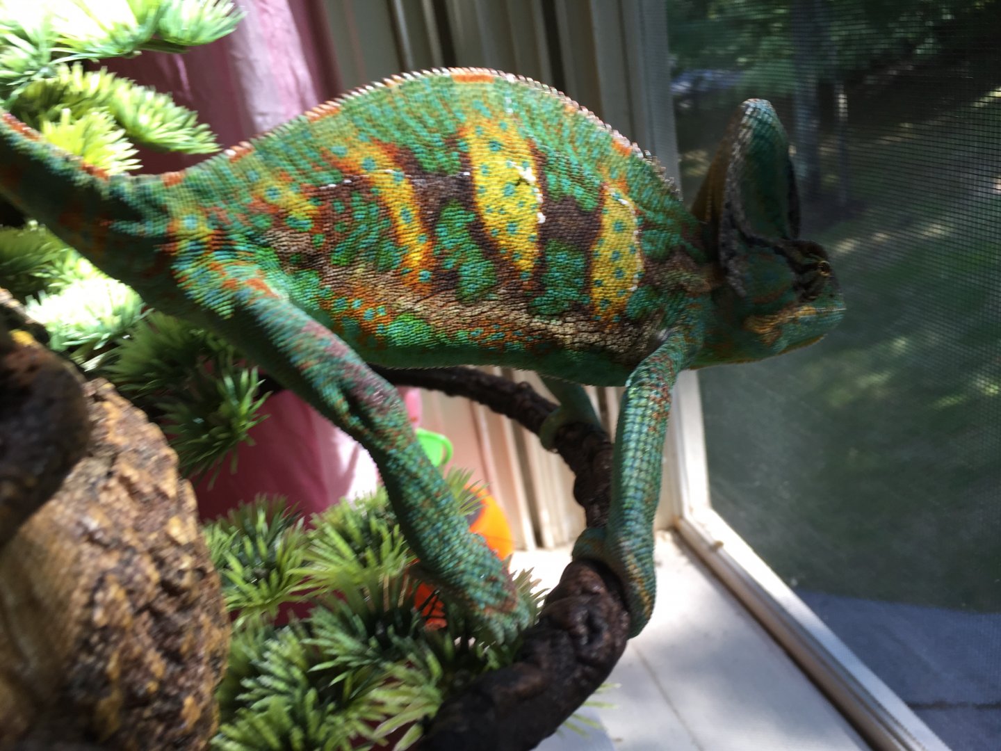 - Your Chameleon - Veild, male, 10 months (we think), I got him in Febuary 2016, the pet store said he was about 2-3 months but bc he was so tiny we assumed he was only 2.