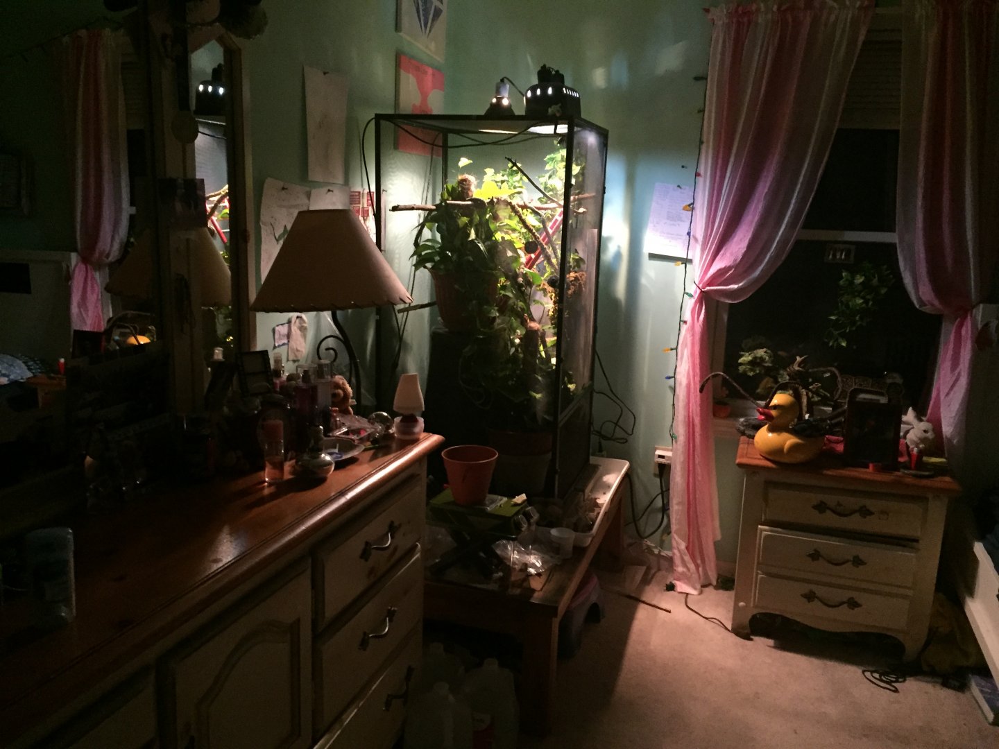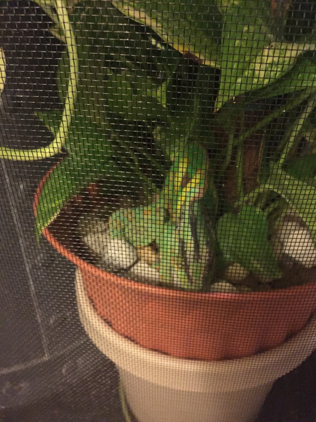- Humidity - it usually stays Inbetween 70%-80% in his cage. I have the mister going off to keep it humid and the plants keep it humid. I have a lil humidor hanging on one of the vines.