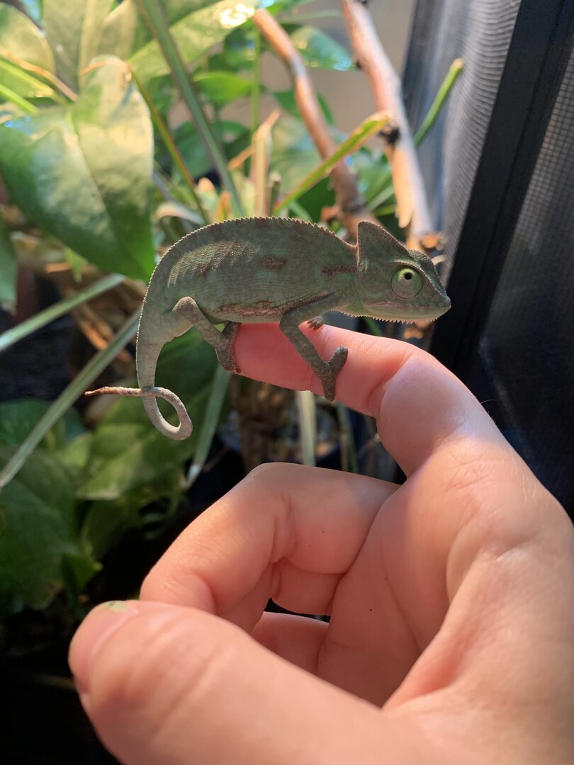 Early this morning I got a message from a friend telling me about a chameleon with a broken tail. She didn’t have pics, so I didn’t know how severe it was. (She’s an owner of a special needs beardie, so she likes to inform me of chameleons or leopard geckos.)