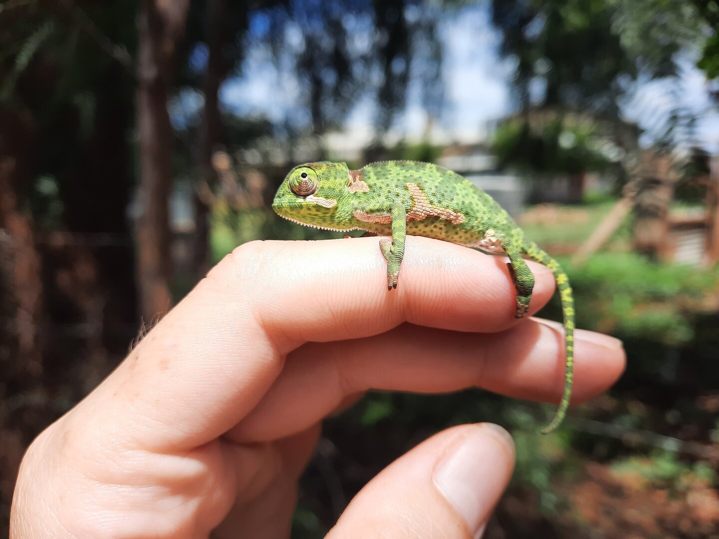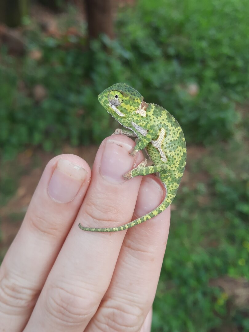 this is Chamaeleo gracilis, a very young specimen.Found this baby in Isiolo, Kenya, but unsure how to differentiate flapnecked and graceful chameleons in general, let alone when it comes to babies. Any help much appreciated!