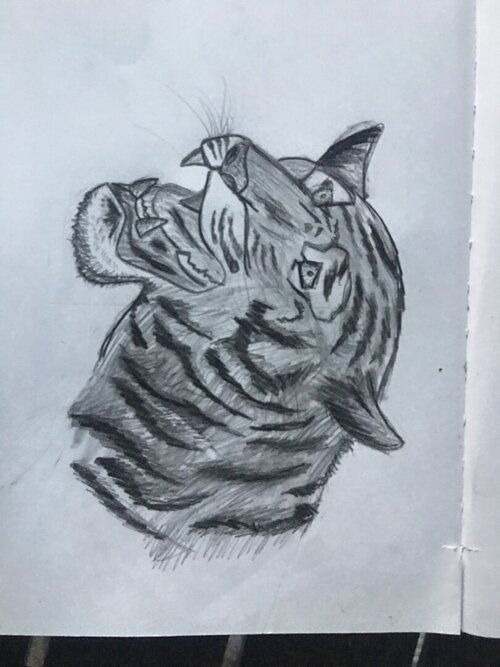 This is a pencil sketch I did of my Tabby cat. If it looks like a meatloaf with ears, it’s because she is a meatloaf with ears.