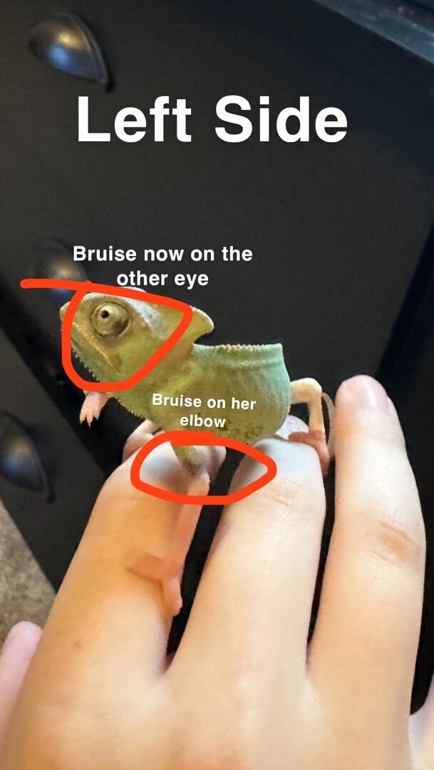 1. Veiled chameleon, female, 2 months old. I’ve had her for two ish weeks.