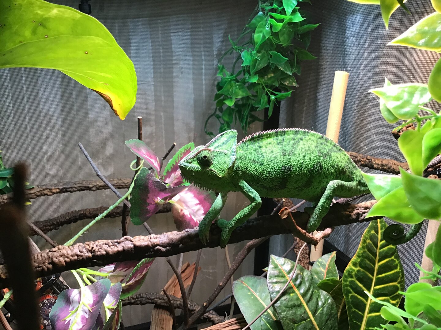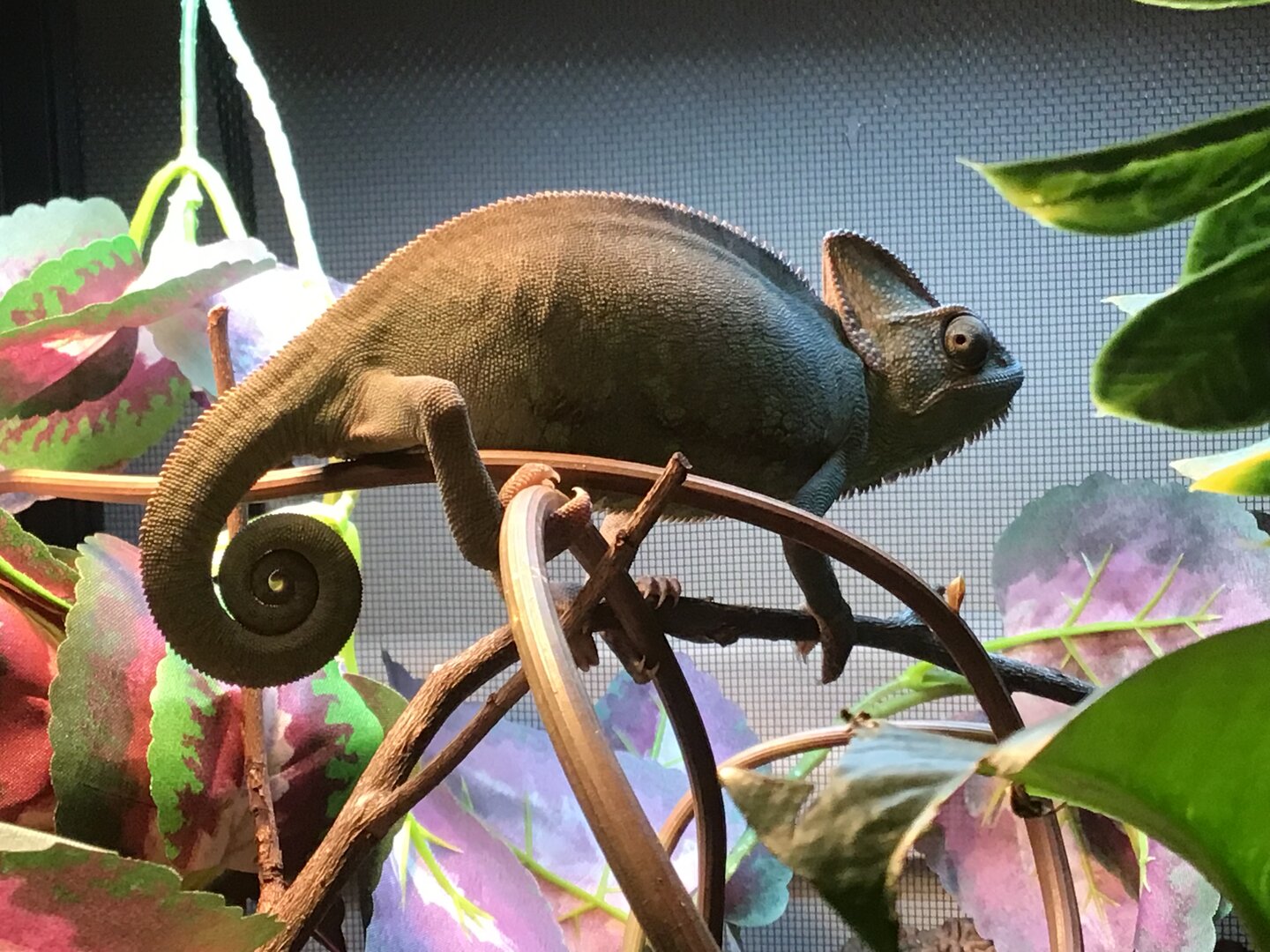 I just got a veiled chameleon from a pet expo recently, i made a mistake for getting him without doing my research and stuff beforehand or setting up the enclosure beforehand also but I’ve got most of it set up now but could definently add on many improvements but my main question is could a darker color be there natural color or no because ever since I got him he’s always been that color but when he sleeps he does change like a yellow color but all other times when he’s not sleeping he’s usually a darker color never really a greenish color