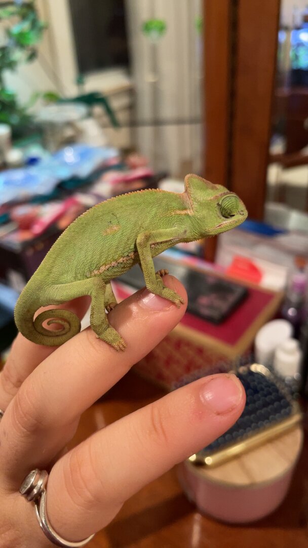 I got a baby veiled chameleon I’ve had him for about 3 months he is 5 months old now. He just doesn’t seem to be growing much and he seems skinny… I provide fresh bugs (dubias they are fed carrots and lettuce) for him every day in the morning with calcium and vitamins twice a month. Sometimes he eats sometimes he doesn’t. Not sure how to fatten up the little guy