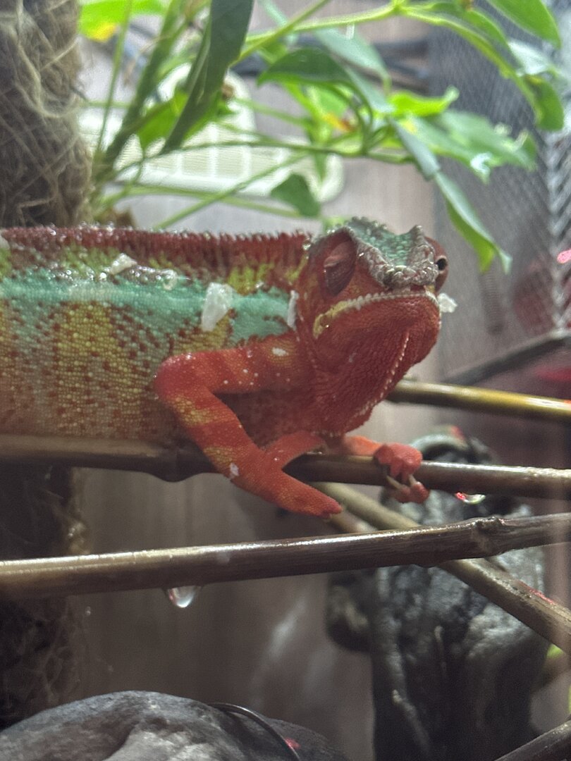 My panther Chameleon (Blaize) is about 3 years and 5 months old. I haven't had any problems in the past with his eyes but for around 2 days now he had his right eye closed. It didn't look swollen at all just like he was sleeping, however his left eye was still open and functioning. I've read up about how this could be a symptom of lack of Vitamin A. So I gut loaded his food with vegetables that supply that (like sweet potatoes and carrots) as well as others. I also dusted Nutrobol on the insects when feeding it to him, as it has vitamin A also in it. I was just wondering how long I should feed him and help him at home before going to see a vet. I would have done it sooner but their isn't any close by and I wouldn't want to cause stress to him for something small. Other than his eye closed he is moving around coming out drinking and eating regularly. I was just wondering if anyone had any thoughts on this?