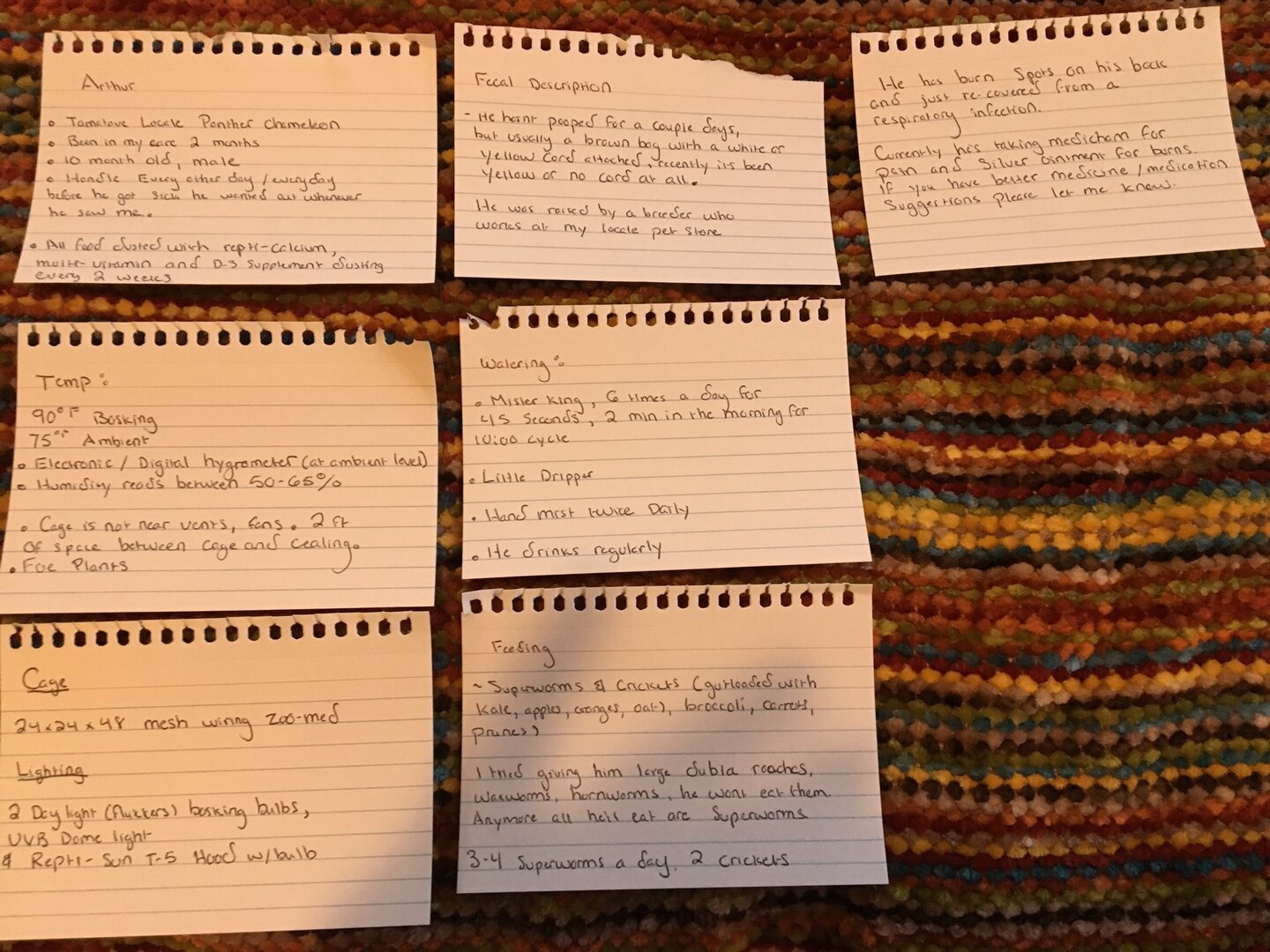• Feeding - What are you feeding your cham? What amount? What is the schedule? How are you gut-loading your feeders?