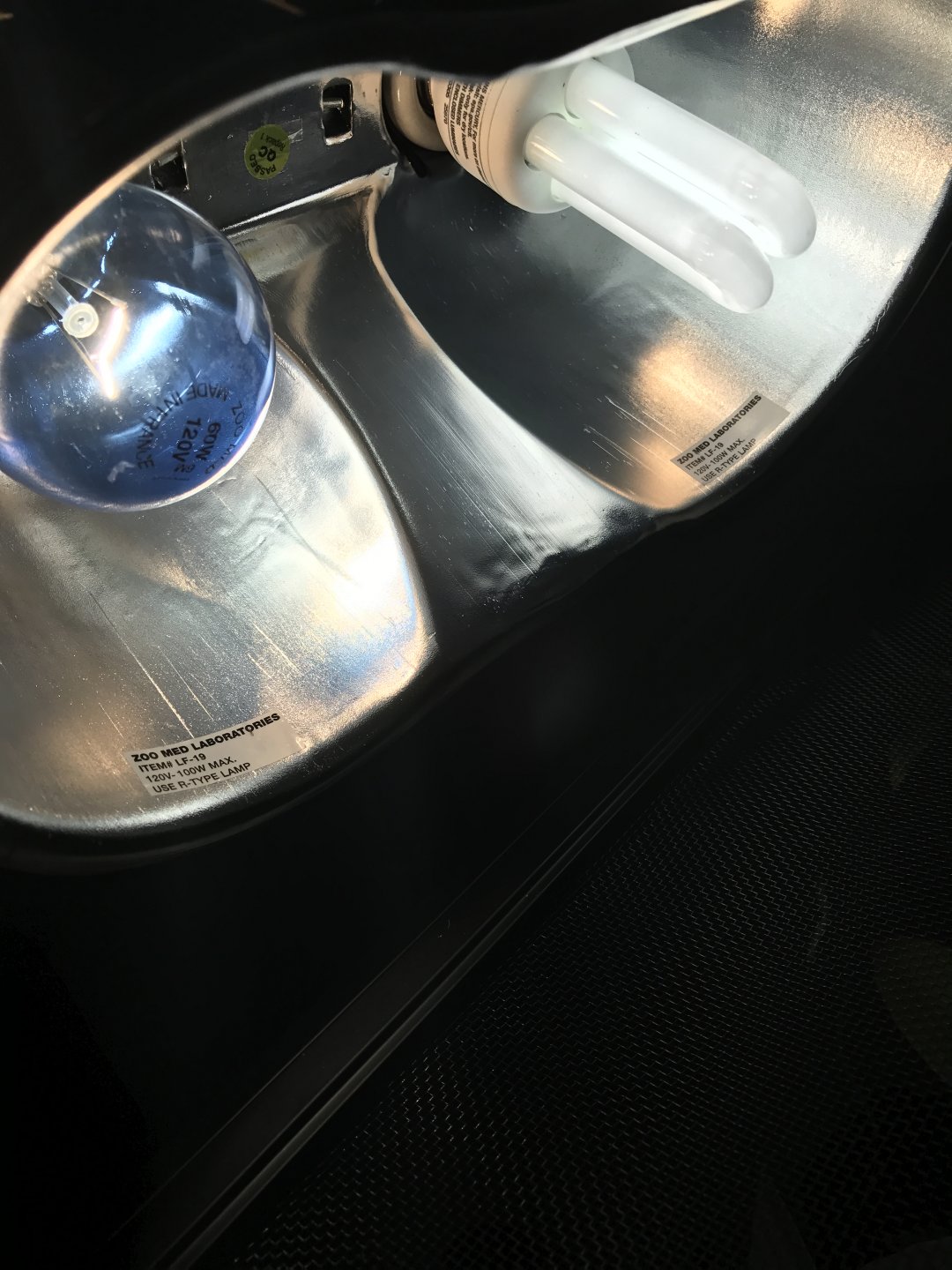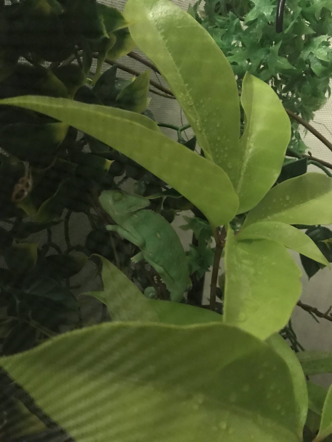 new owner to a baby veiled. We started with the zoo med kit and added other things inside and a drip system as well. He was doing great the first two nights, then just sat up by the light not moving much. (I had put tinfoil on two sides prior to him starting that, and removed it the next day...) I also added a new live plant to the inside and he seems to be moving around more and back to what he was (75%) since bringing him home. Still sits up by he light a lot throuought the day though...