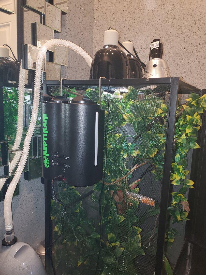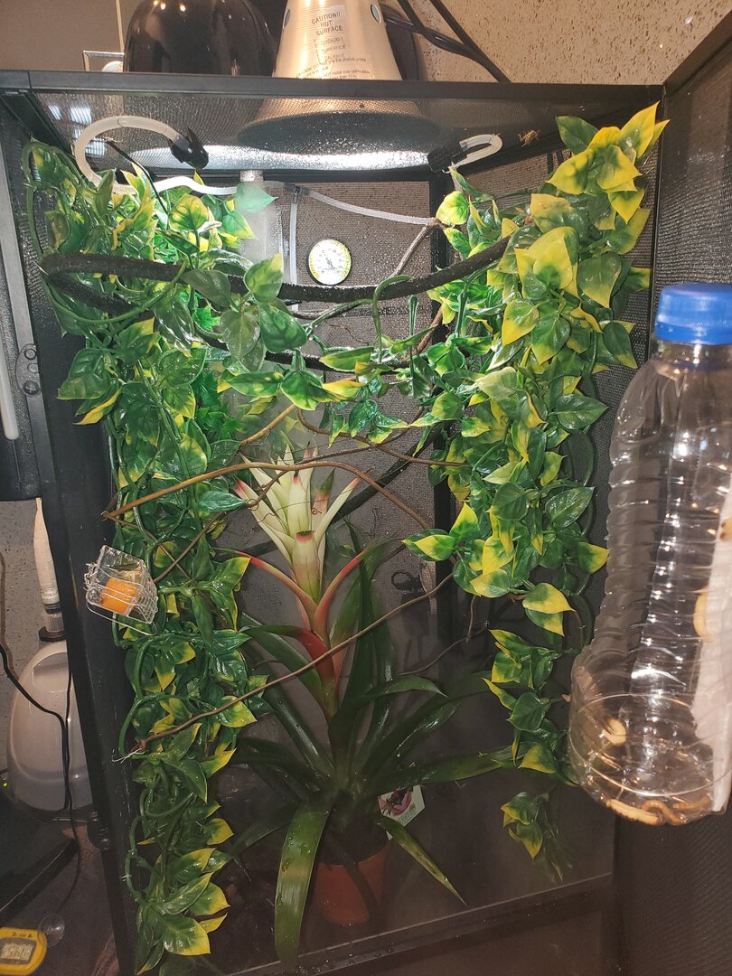 - Watering - I use an automatic mister that sprays for 30 seconds every hour on half the cage as well as a fogger