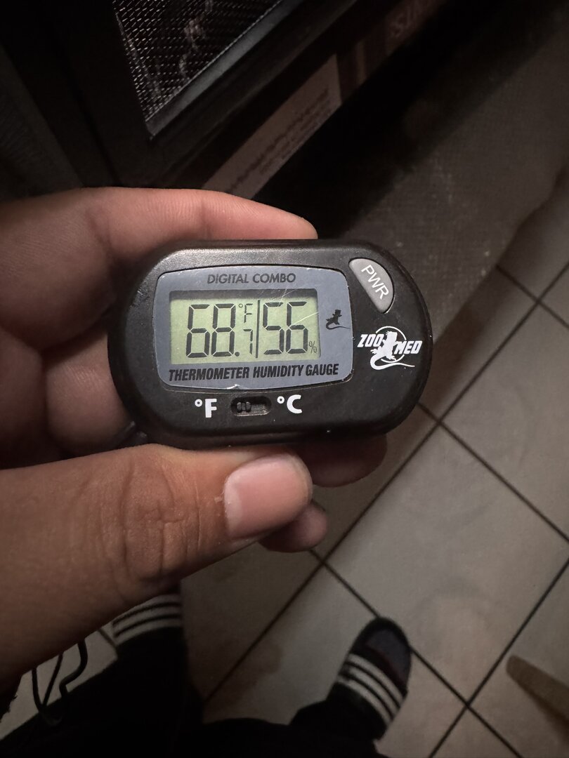 - Humidity - Humidity is 73, gauging with Zoo Med meter.