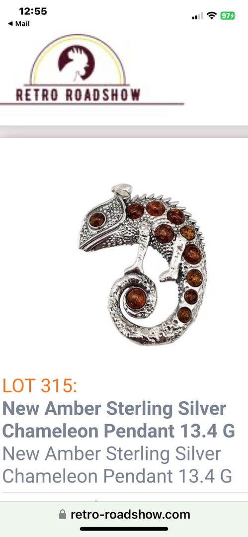 I just wanted to show off the Chameleon pendant that I won at auction. Can’t wait to get it. It’s about two inches long with amber inlay.