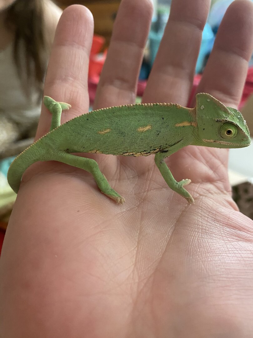 - Handling - How often do you handle your chameleon? I’ve held him twice so far. The first day I got him and again today to confirm he is a boy.