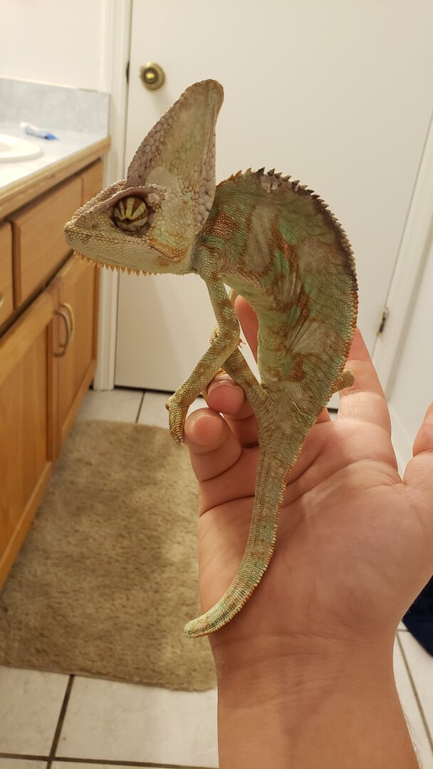 If anybody has any additional tips on how to help this poor guy out, I'd be happy to hear them! He is going into a screened 3.5 ft tall vivarium today with a hibiscus and orchids and everything my other veiled currently has.